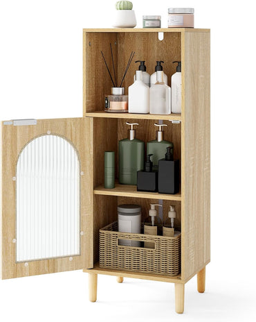 170cm Tall Bathroom Cabinet with Fluted Door and 1 Drawer 3 Open Shelves
