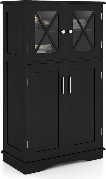 Bathroom Floor Cabinet, Freestanding Storage Cupboard with Tempered Glass Door