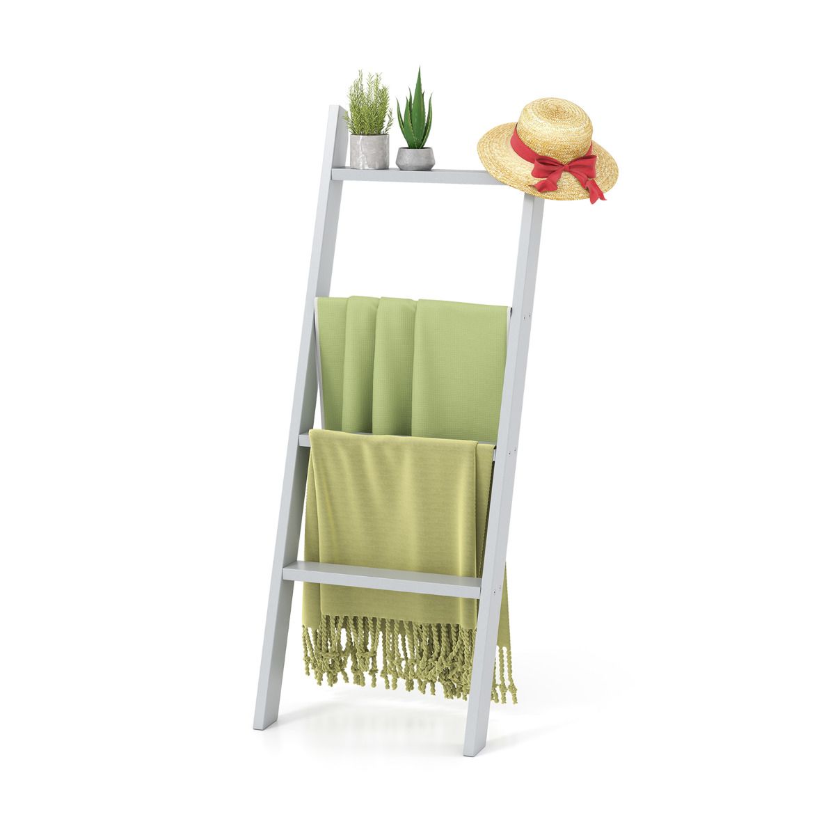 4-tier wooden blanket ladder 137 cm wall leaning quilt holder for storage and display