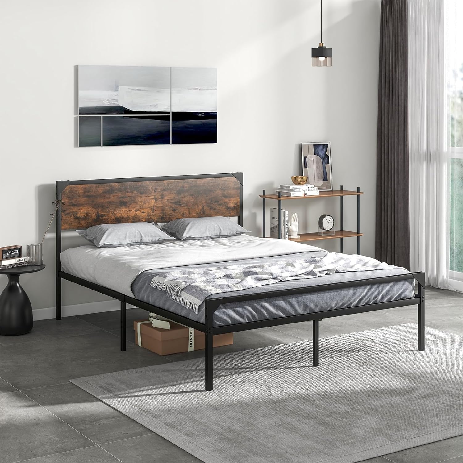 4ft6/5ft bed frame, 31cm full/queen size platform bed with rustic headboard & footboard
