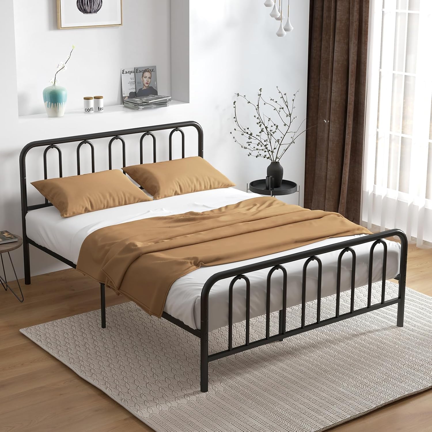 4ft6/5ft platform bed frame, double/king metal mattress foundation with slatted headboard & footboard