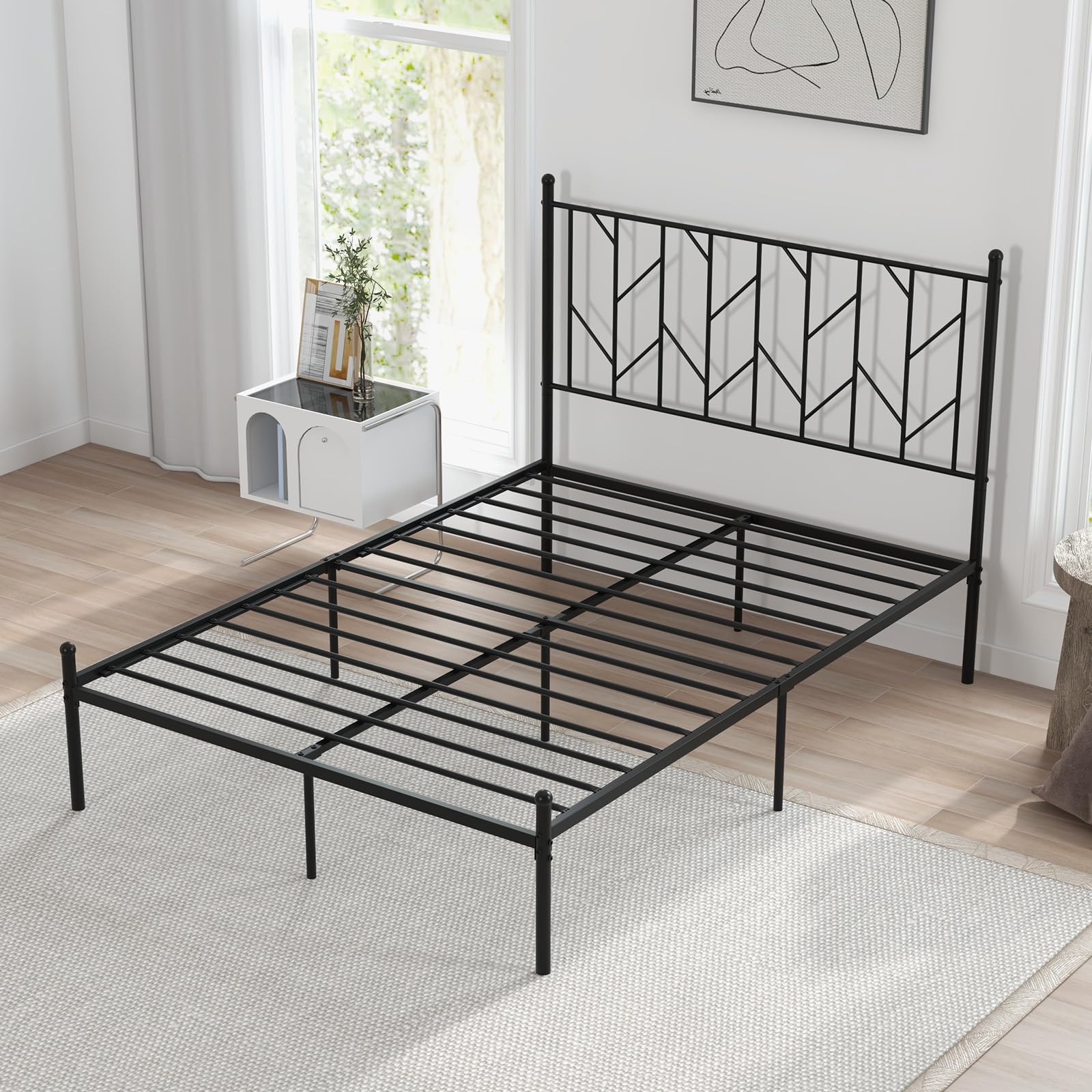Double/king size metal bed frame, 4ft6/5ft platform bed frame with headboard