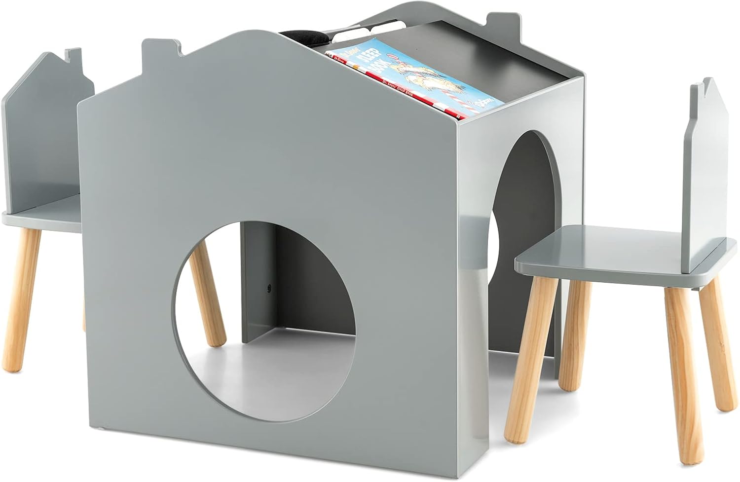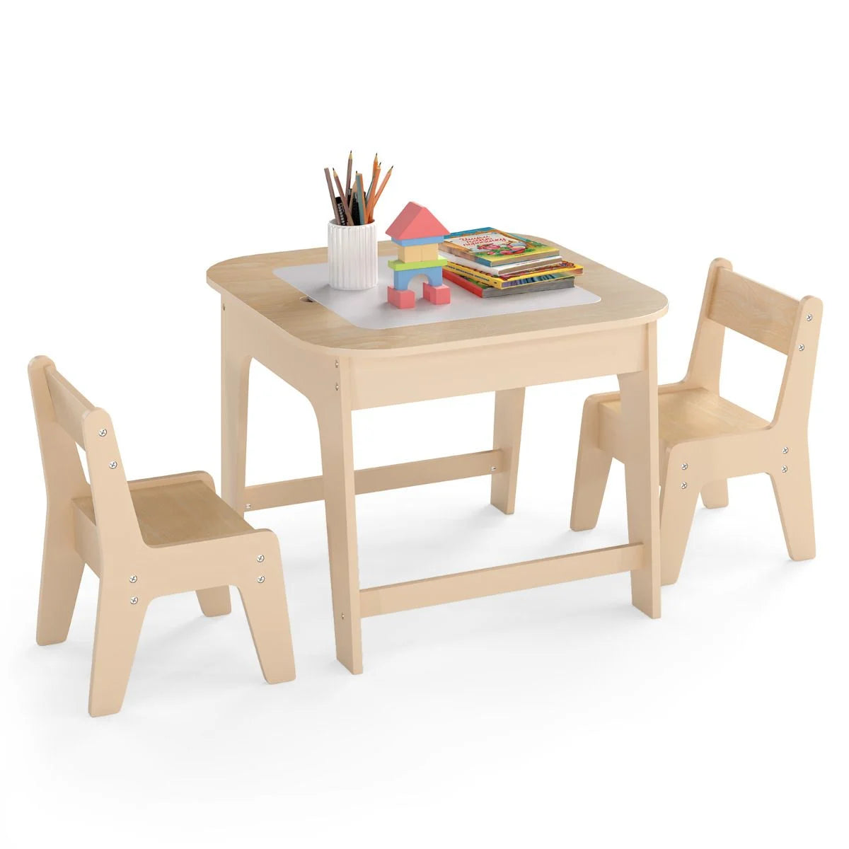 Kids table and chairs set, wooden toddler activity table set with double-sided tabletop and hidden storage