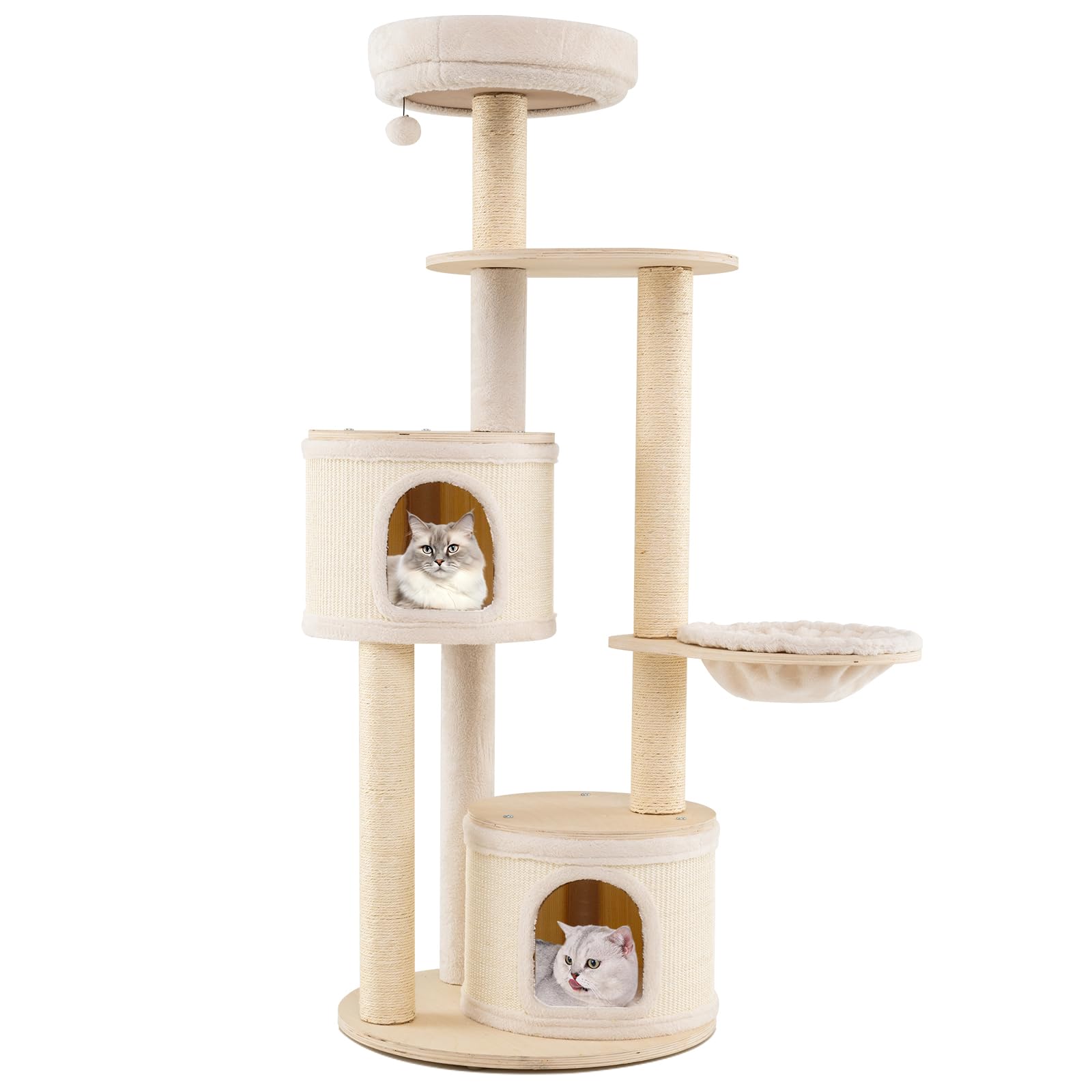 6-level wooden cat tree with cat condo and sisal scratching posts for indoor