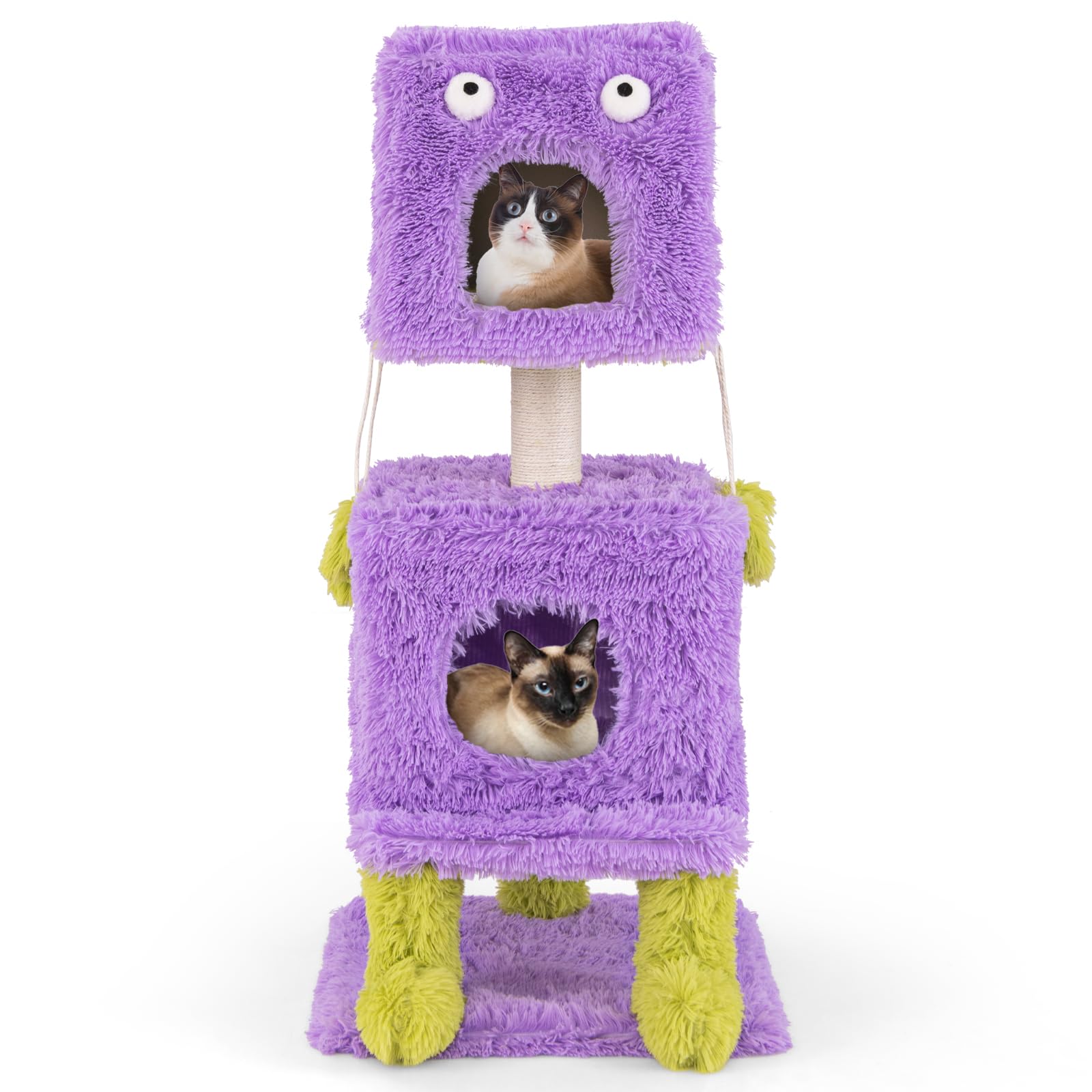 Cute monster-themed cat tower with 2 private condos and soft long plush