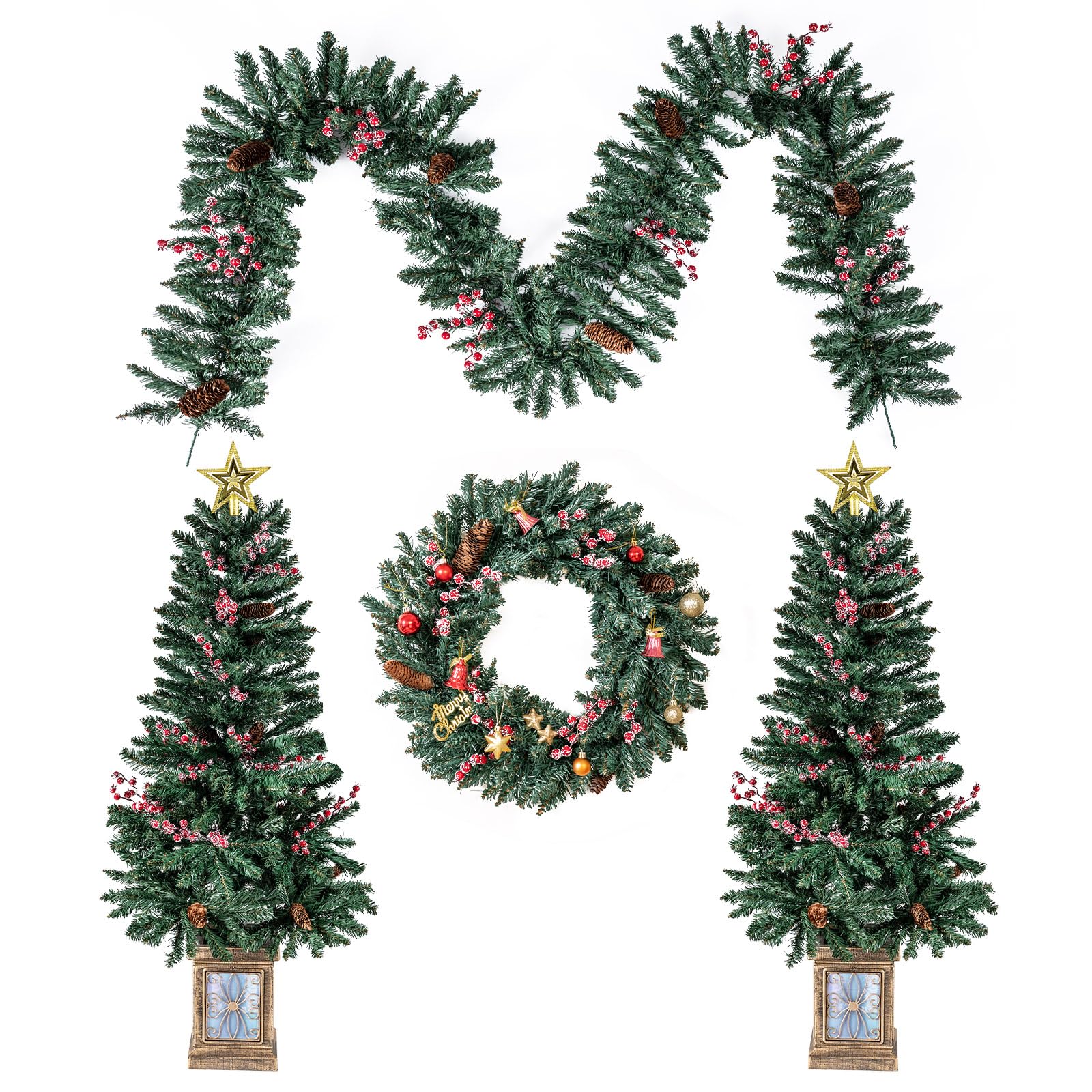 2 pack entrances trees with garland and wreath potted christmas tree set of 4