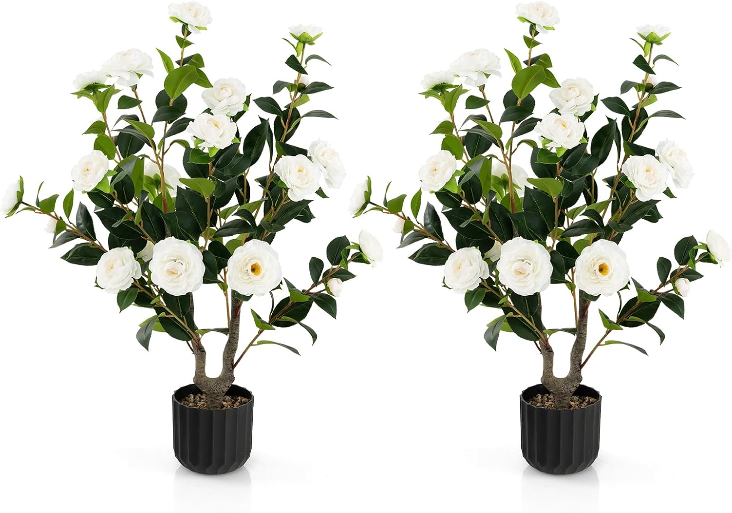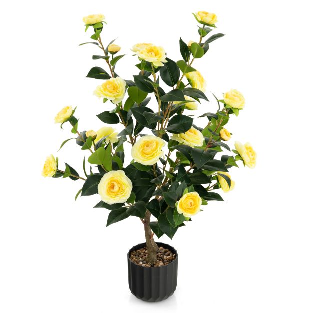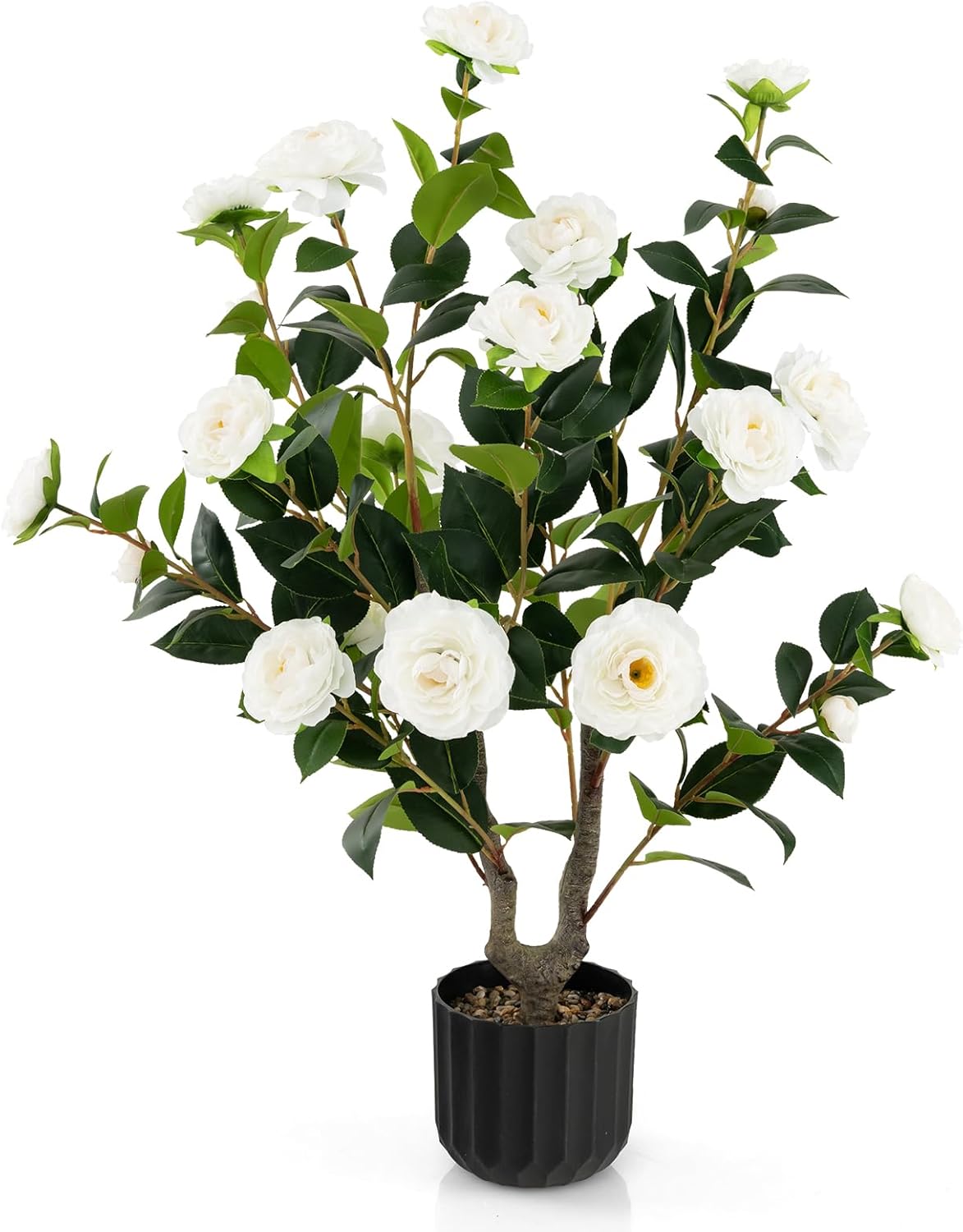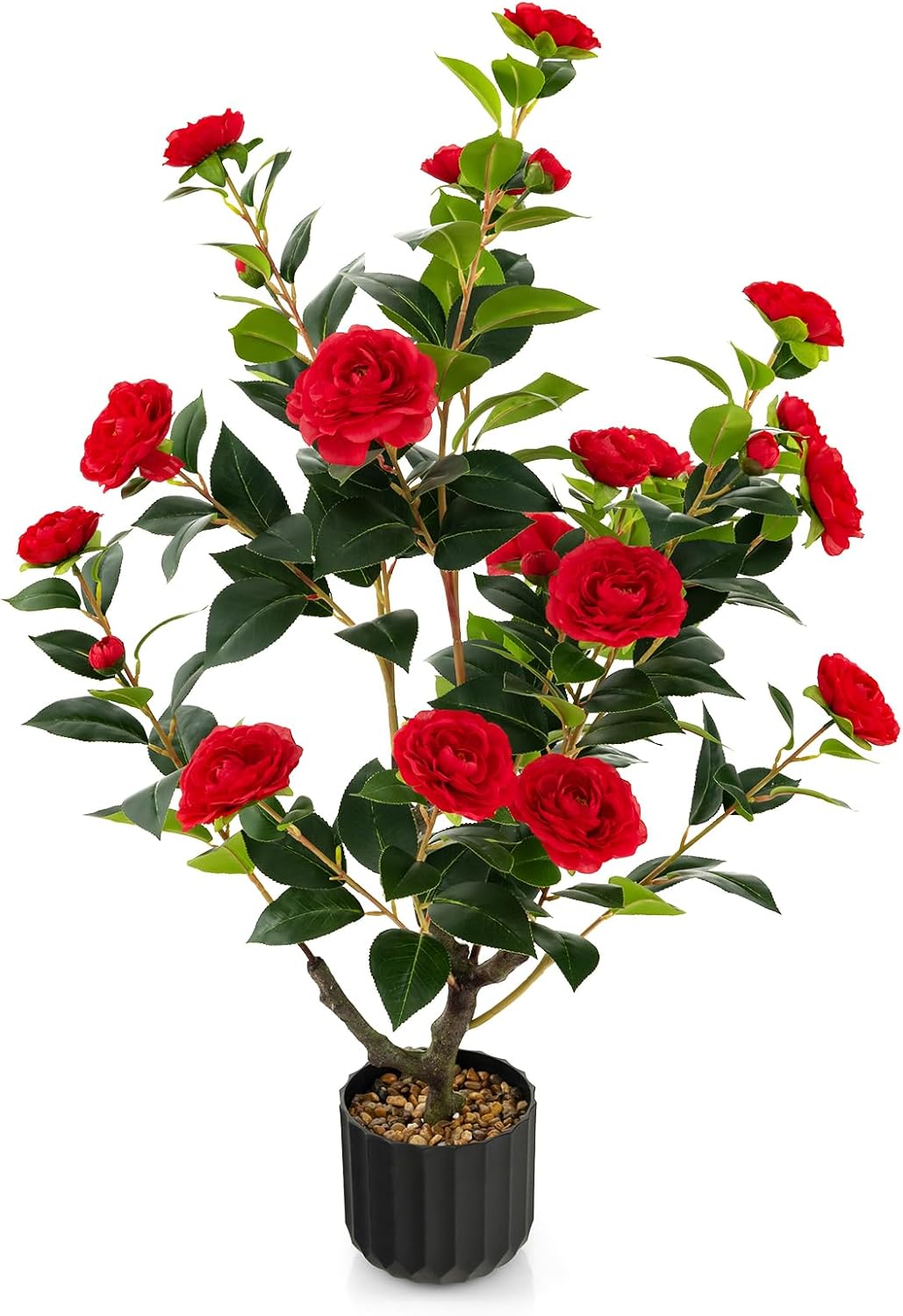 95cm Artificial Camellia Tree with Flowers and Rain-Flower Pebbles