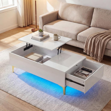 Lift Up Top Coffee Table with LED Lights, High Gloss Lifting Cocktail Center Table