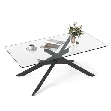 Rectangle Glass Coffee Table with Tempered Glass Top and Metal Tubular Legs