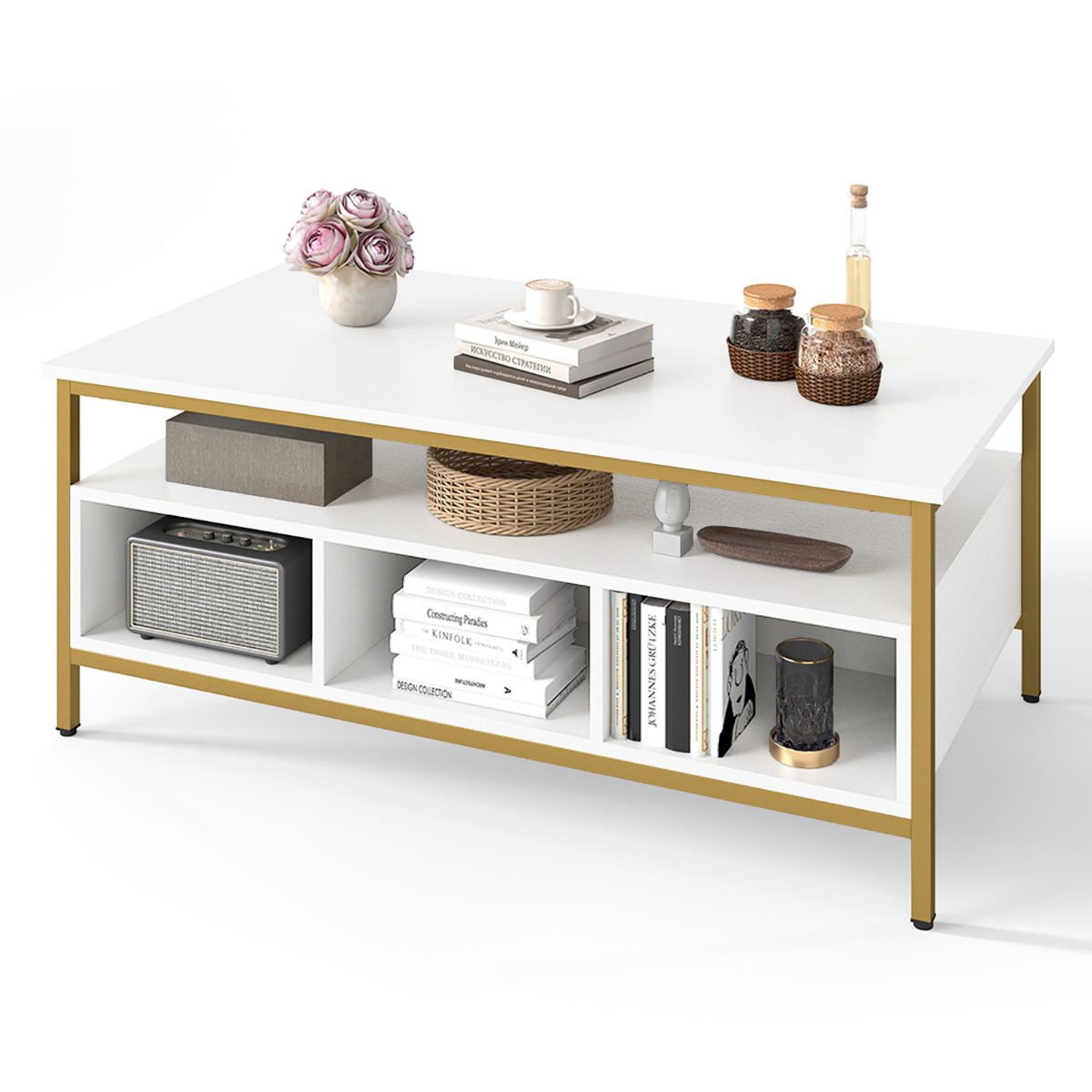 Modern rectangle coffee table with 2-tier open storage shelves