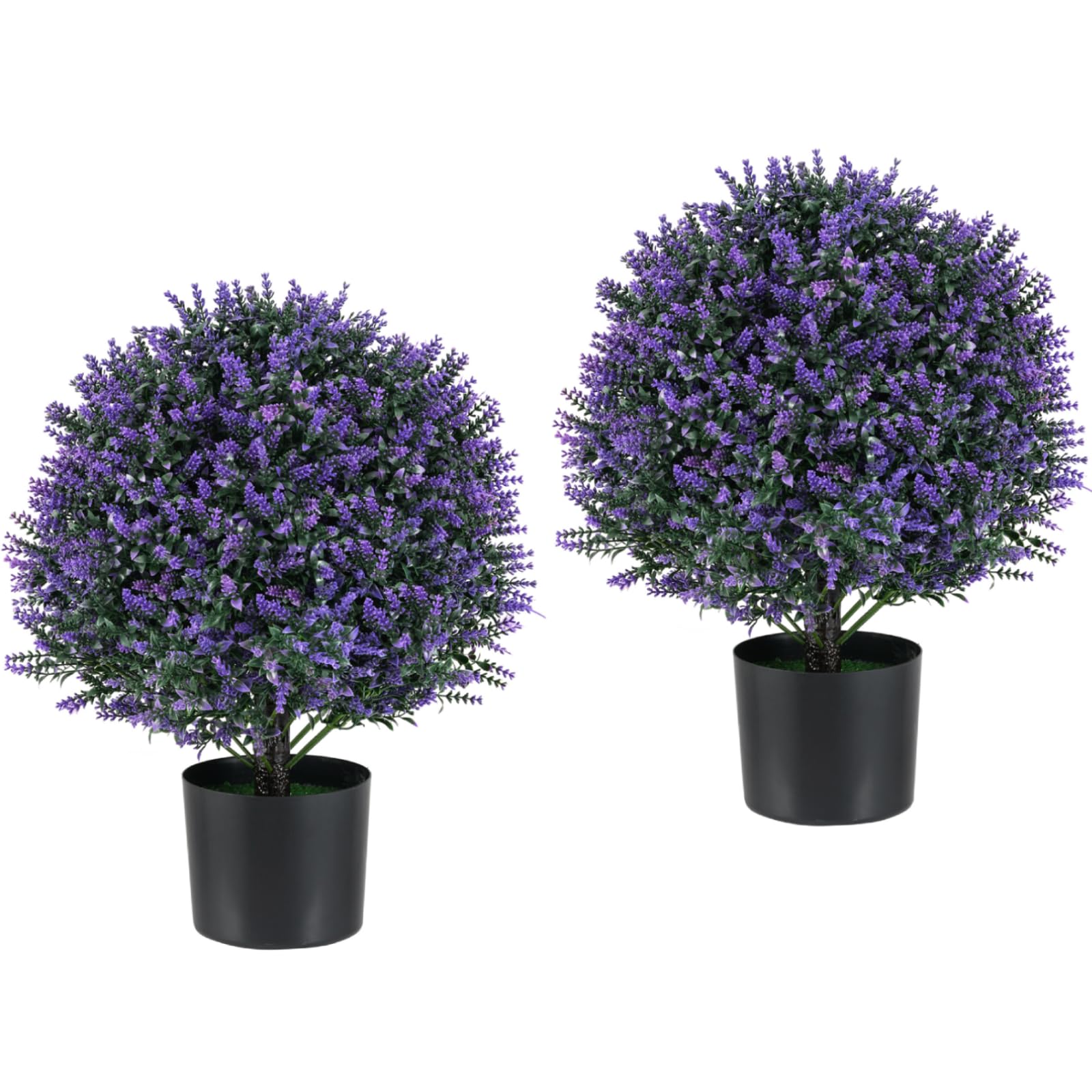 2 pack artificial lavender topiary ball tree faux shrub bushes