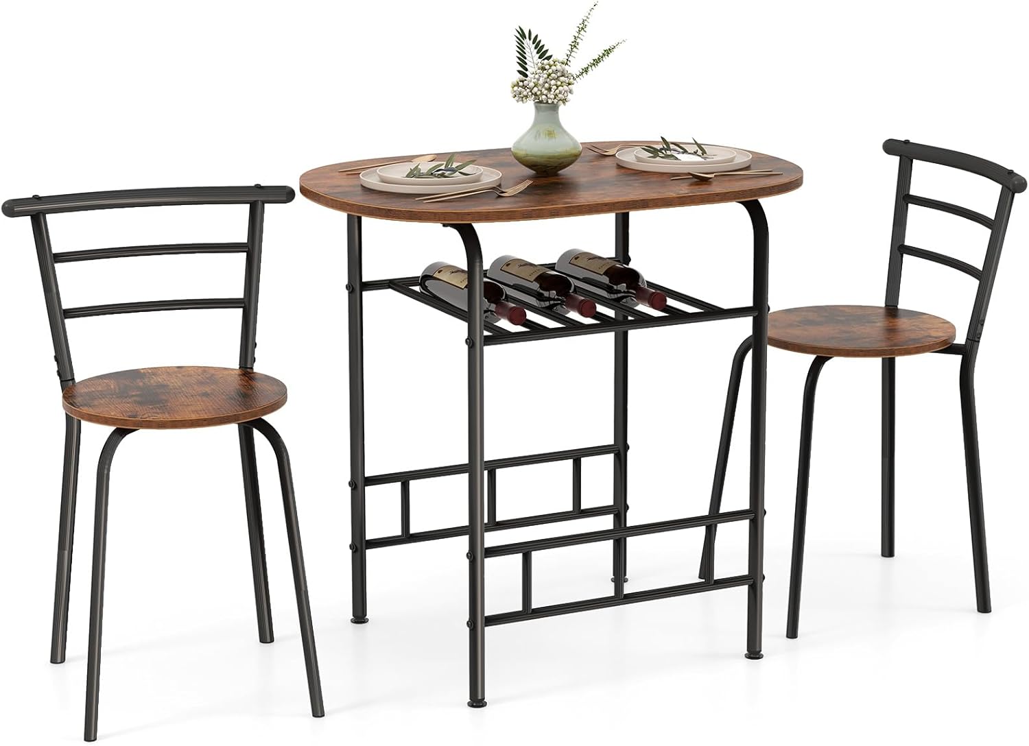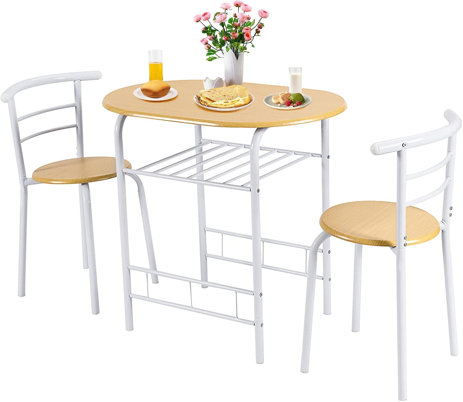 Giantexuk 3-piece dining table set, metal frame kitchen table set with storage shelf