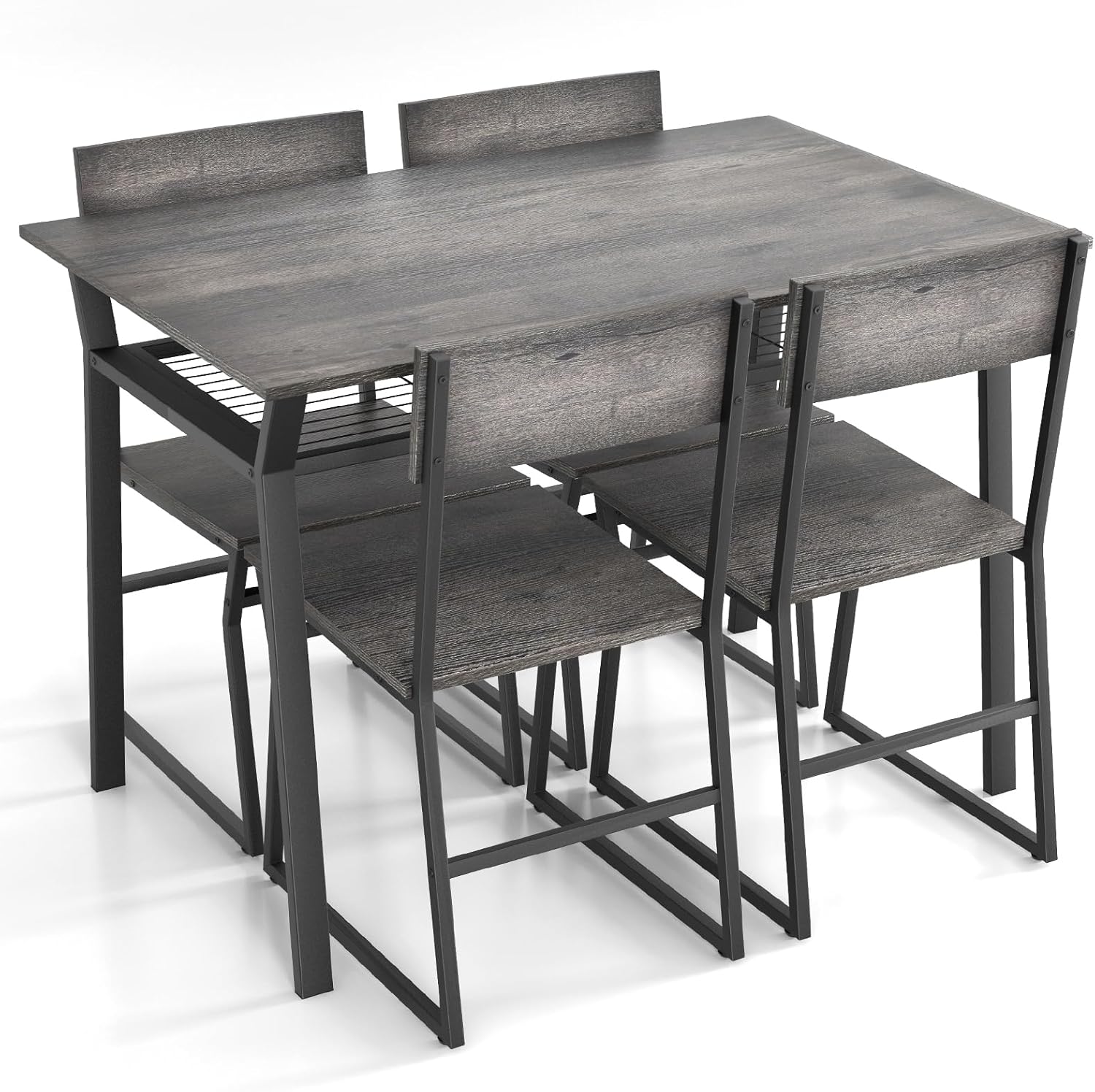 Giantexuk 5 pcs dining table set, industrial table and chairs set with storage shelf and reclining seat back