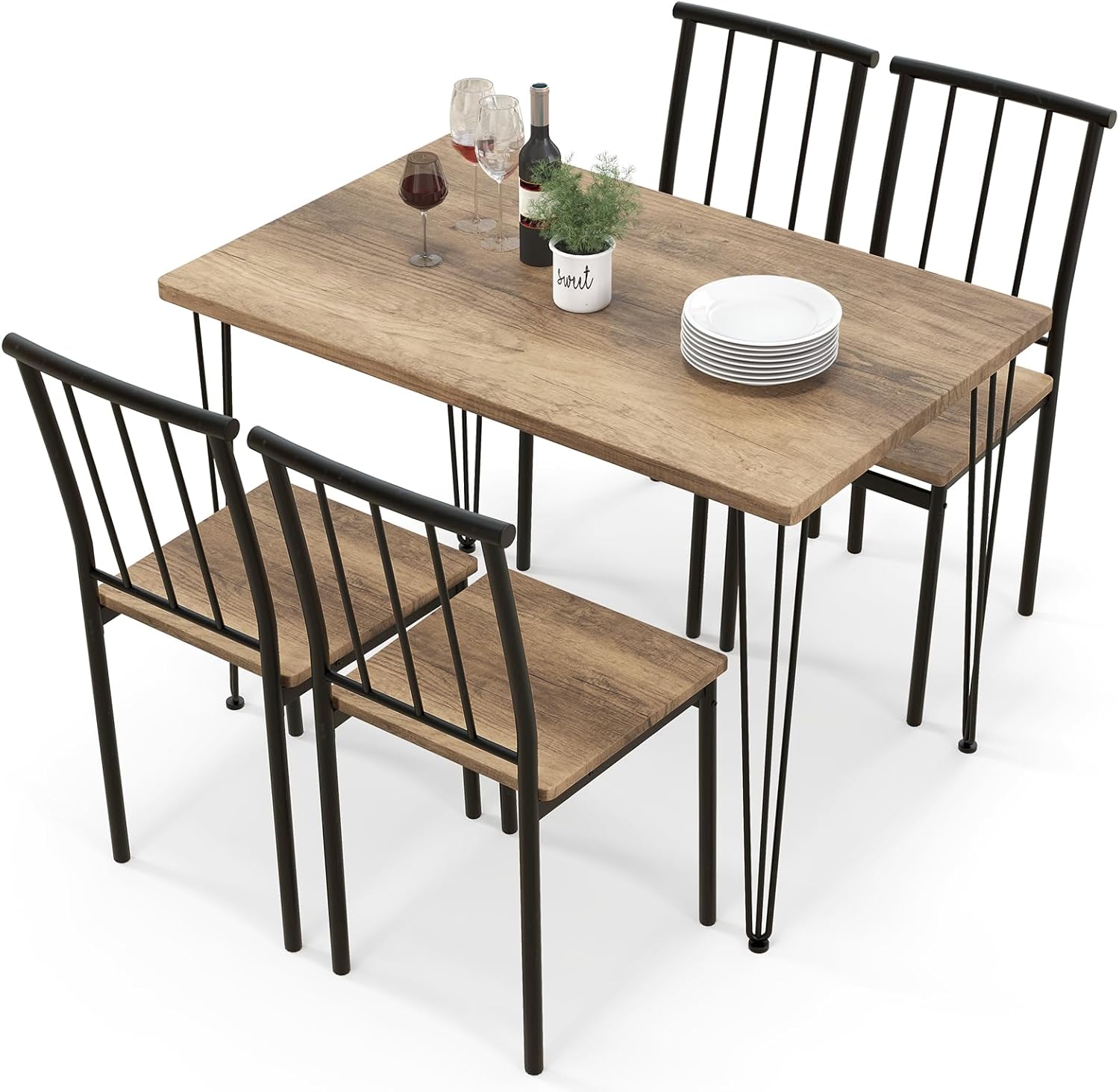 Product Description Product Details: Enjoy Pleasant Dining with Our Dining Table Set! Our industrial 5-piece dining table set includes a table and 4 chairs, which is...