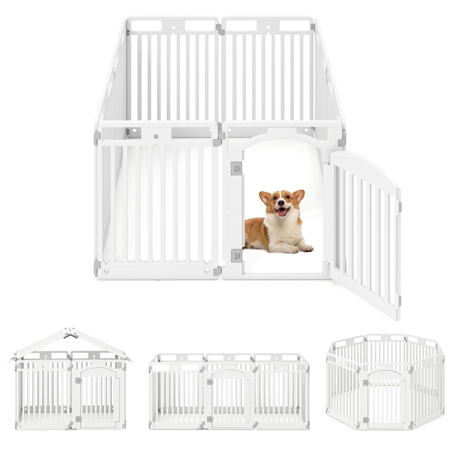 This plastic dog playpen includes 6 panels that can be arranged in various shapes like a hexagon, a house with a roof, or a rectangle, offering...