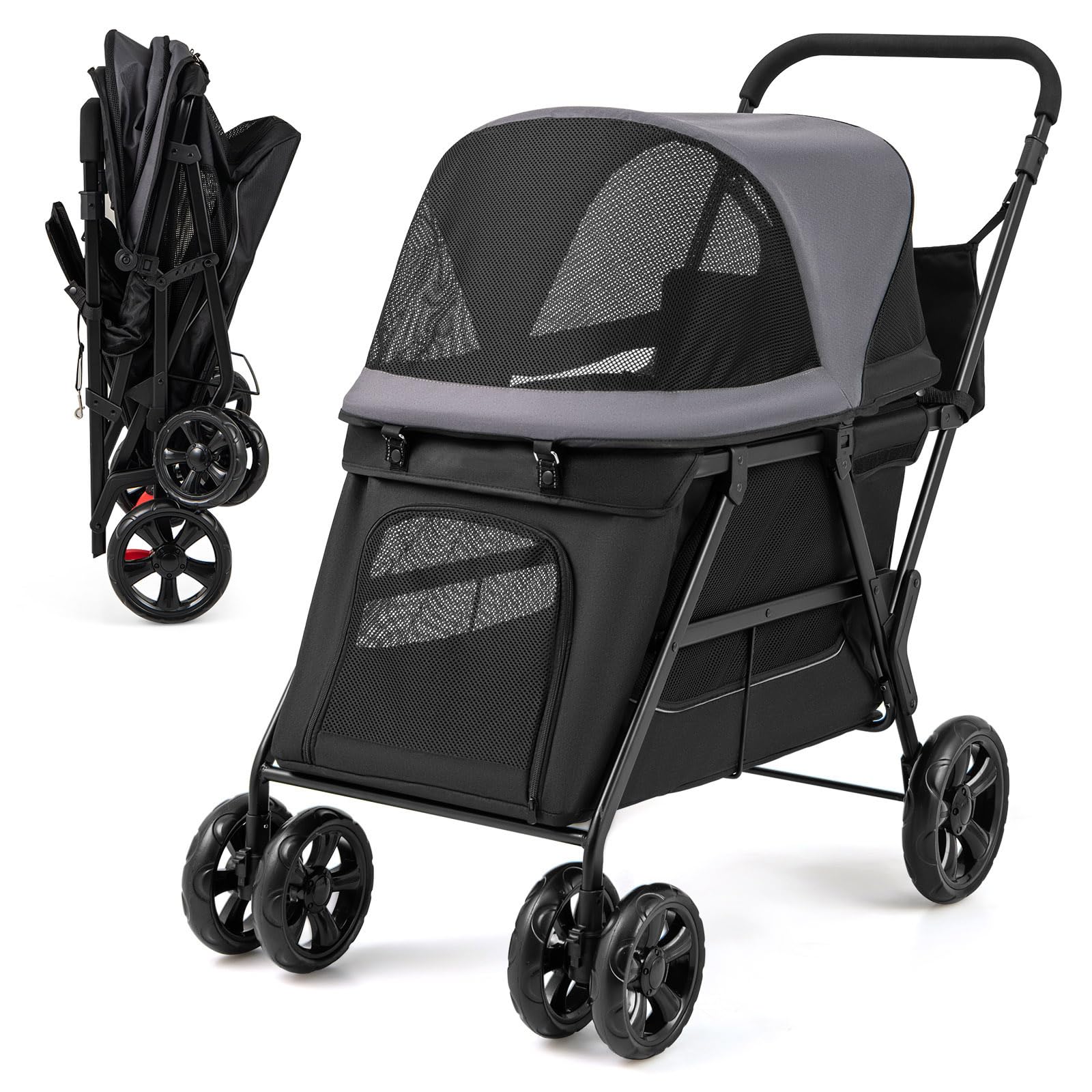 Foldable dog pushchair cat pram with dual entry for dogs cats