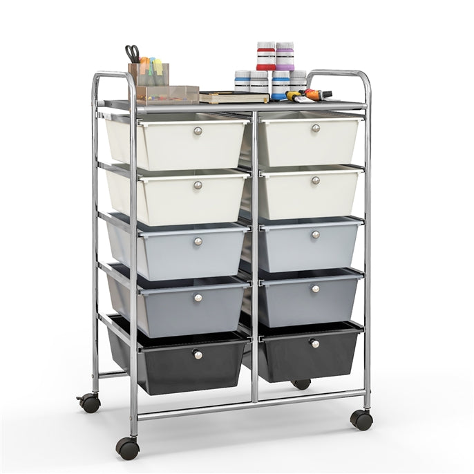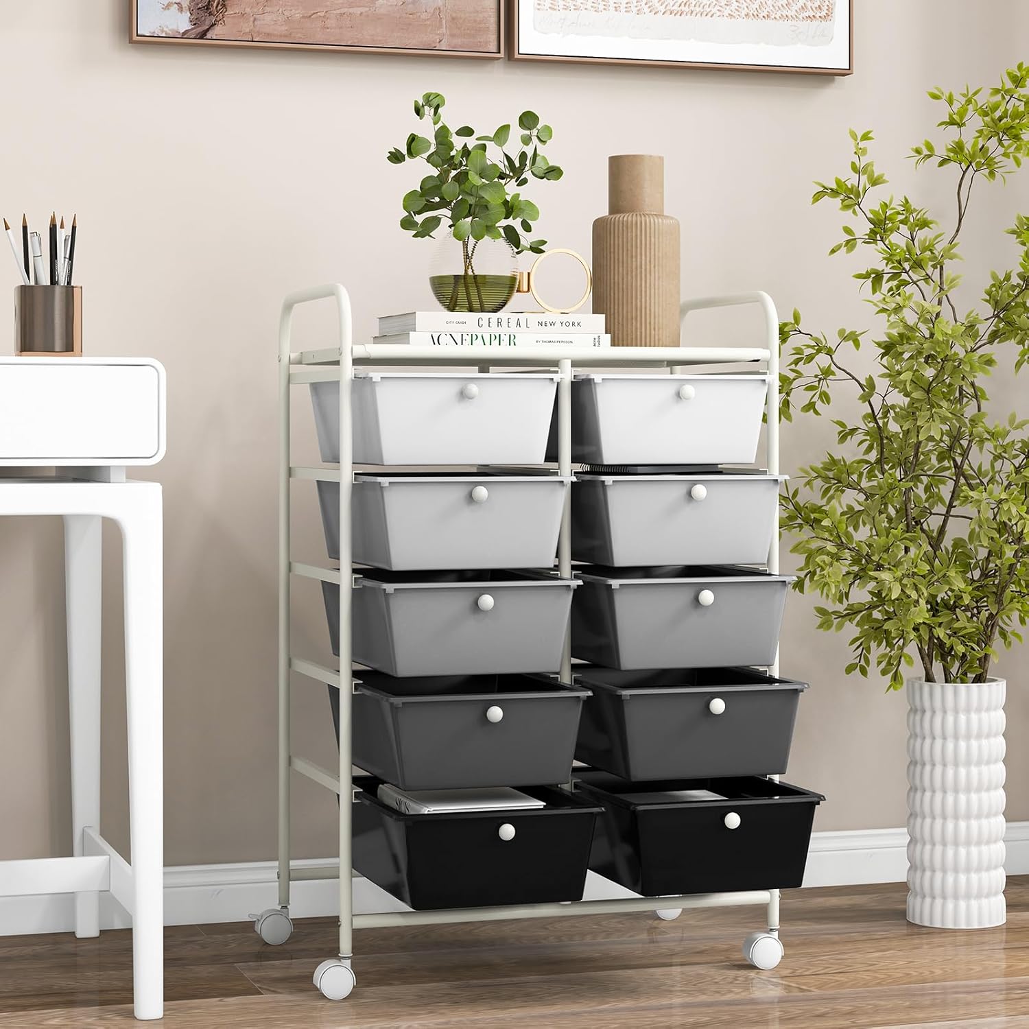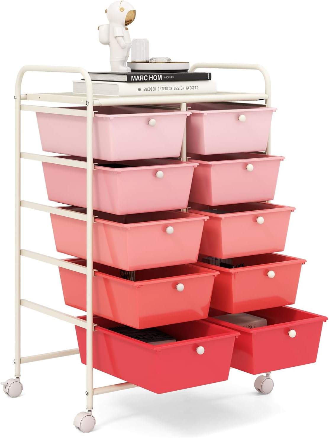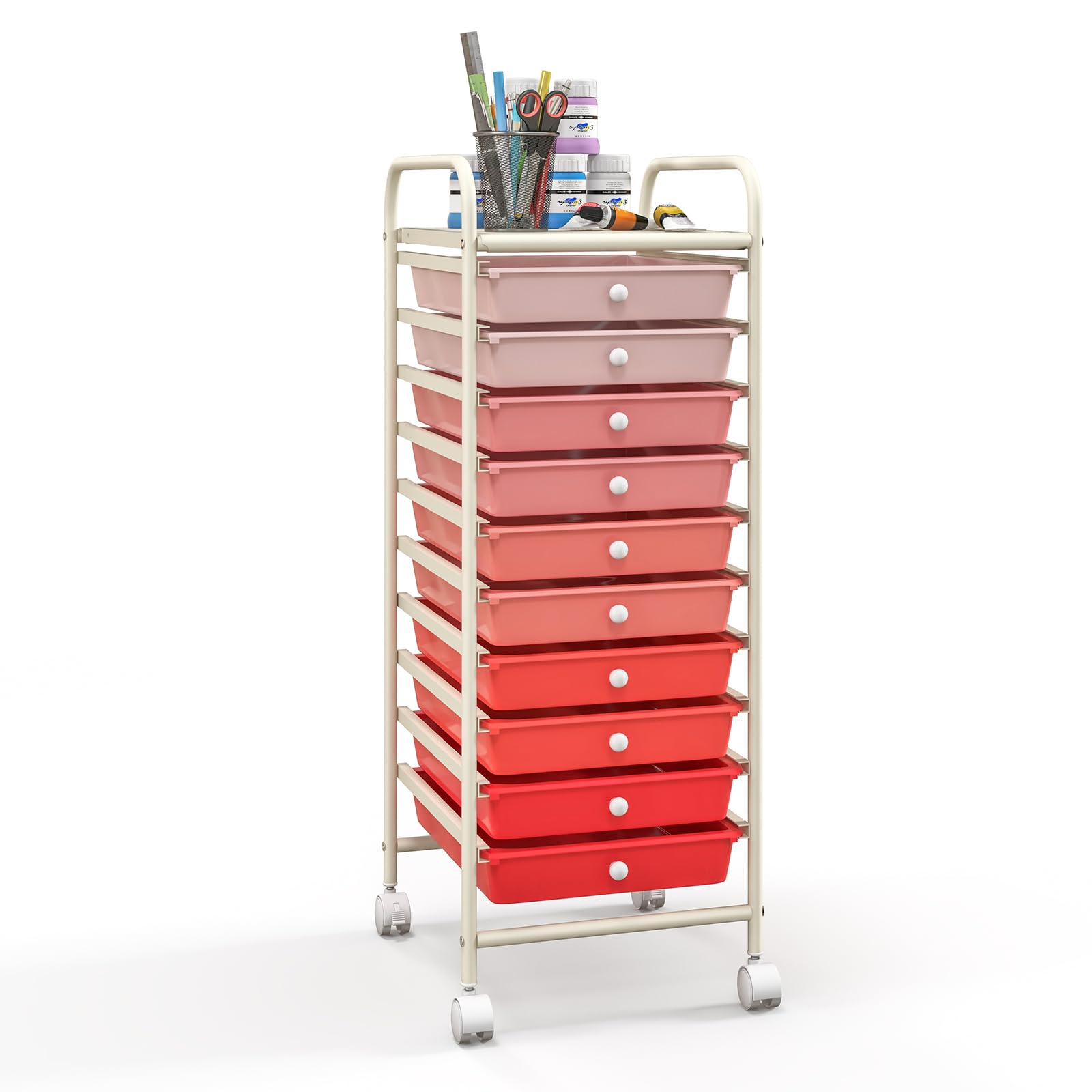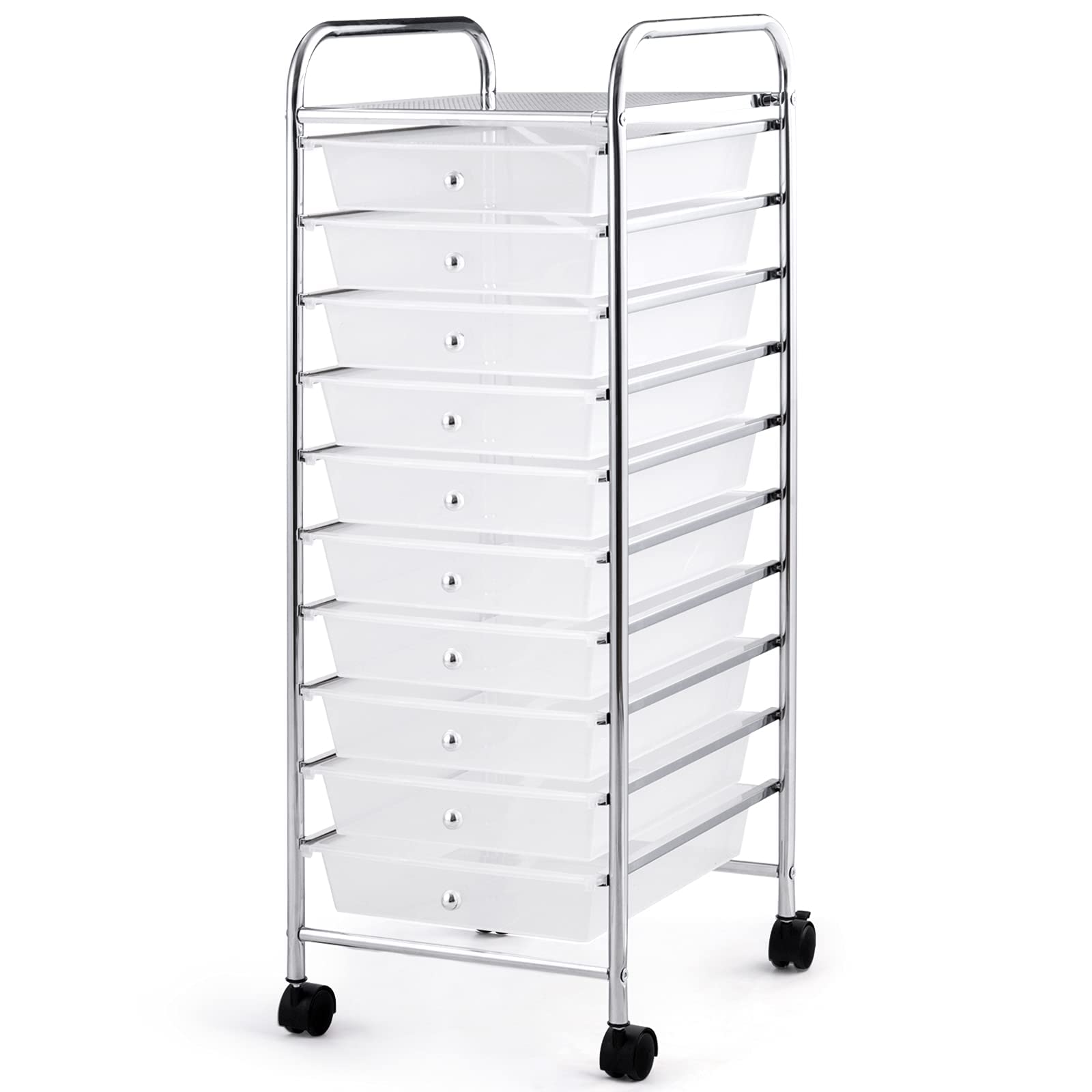 Giantexuk 10 drawers rolling trolley, multipurpose utility storage organizer cart with wheels