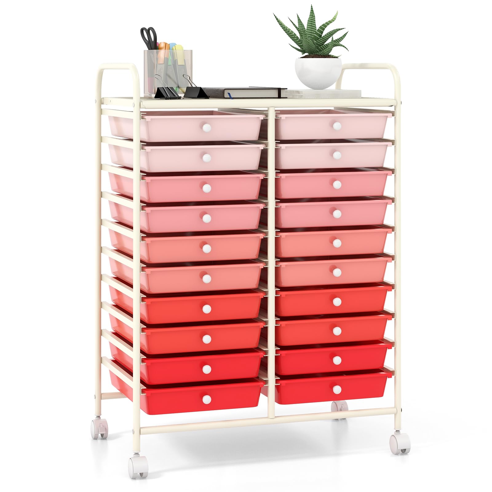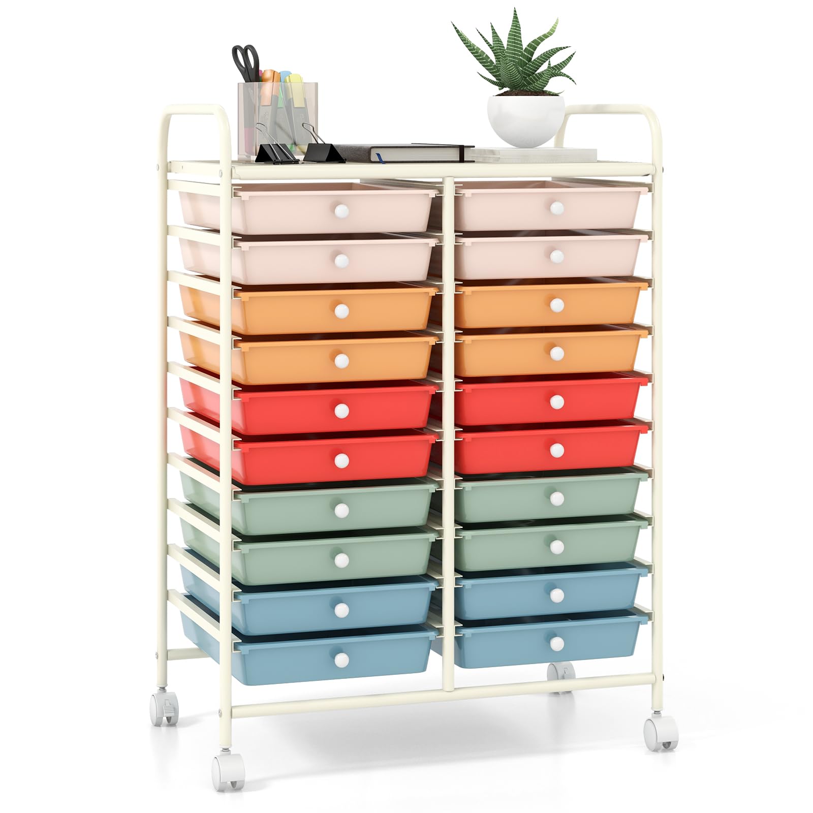 Giantexuk 20 drawers storage trolley, multipurpose mobile rolling cart with lockable wheels