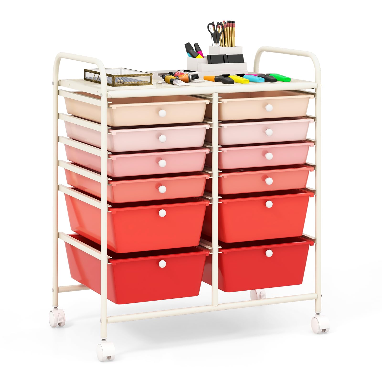 Giantexuk 12 drawers storage trolley, multipurpose utility rolling cart on wheels
