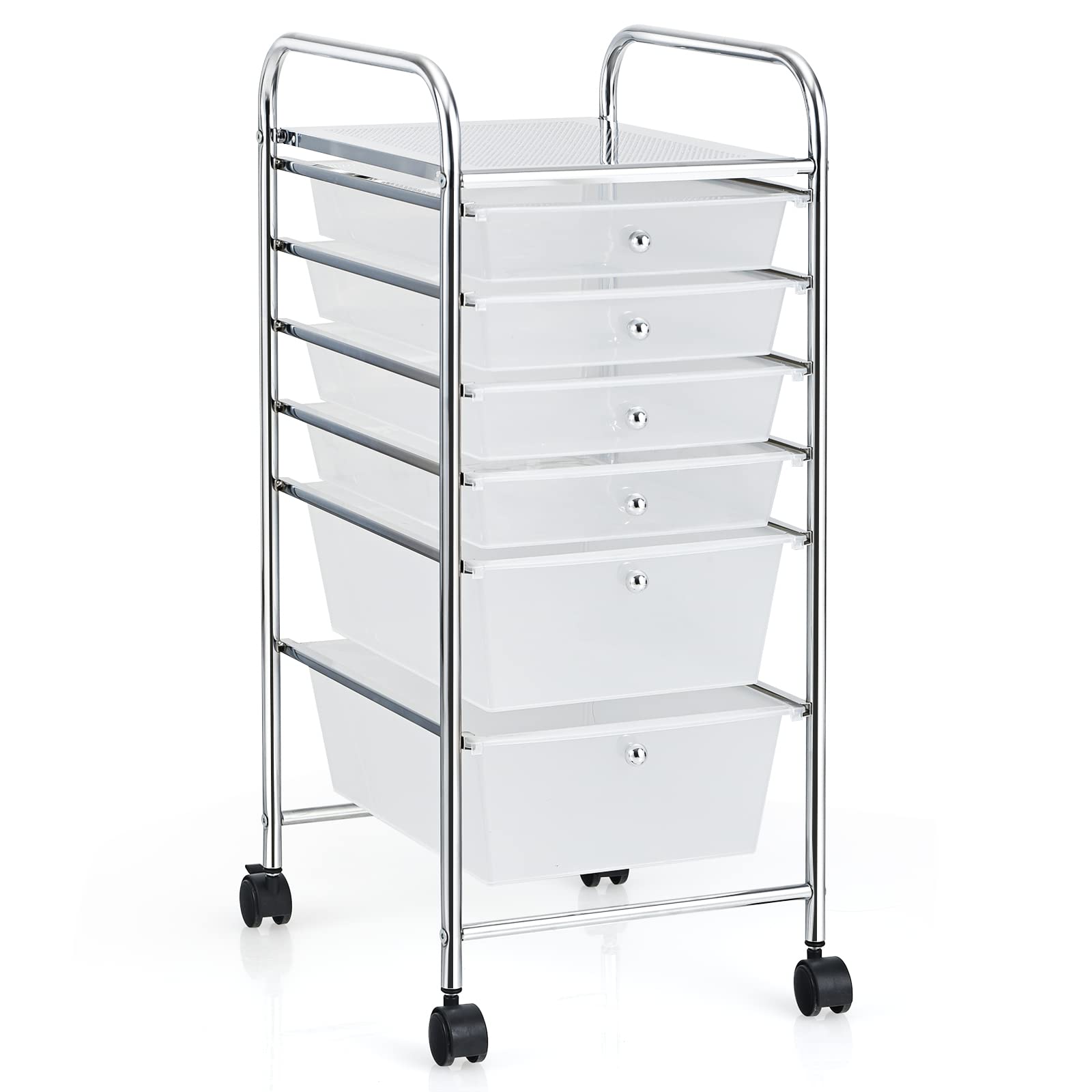 Giantexuk 6 drawers storage trolley, multipurpose utility rolling cart on wheels, plastic shelving organizer unit (6 drawers, transparent)