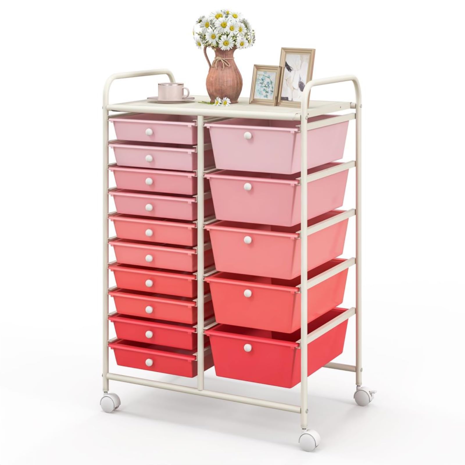 Giantexuk 15 drawers rolling trolley, utility storage organizer cart with wheels