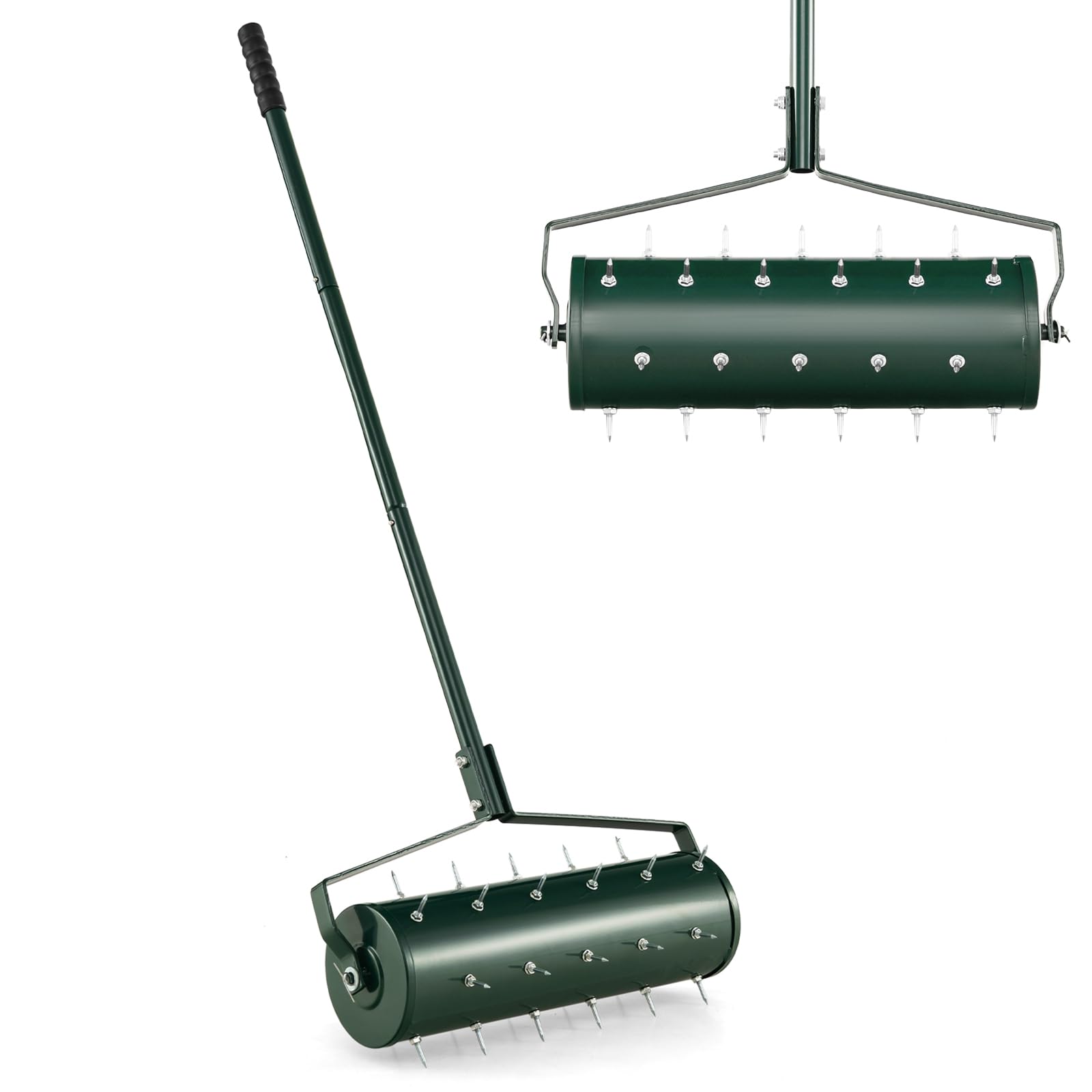 Giantexuk outdoor lawn aerator, heavy duty 43/53cm manual grass roller with sand filled drum & 130cm detachable handle