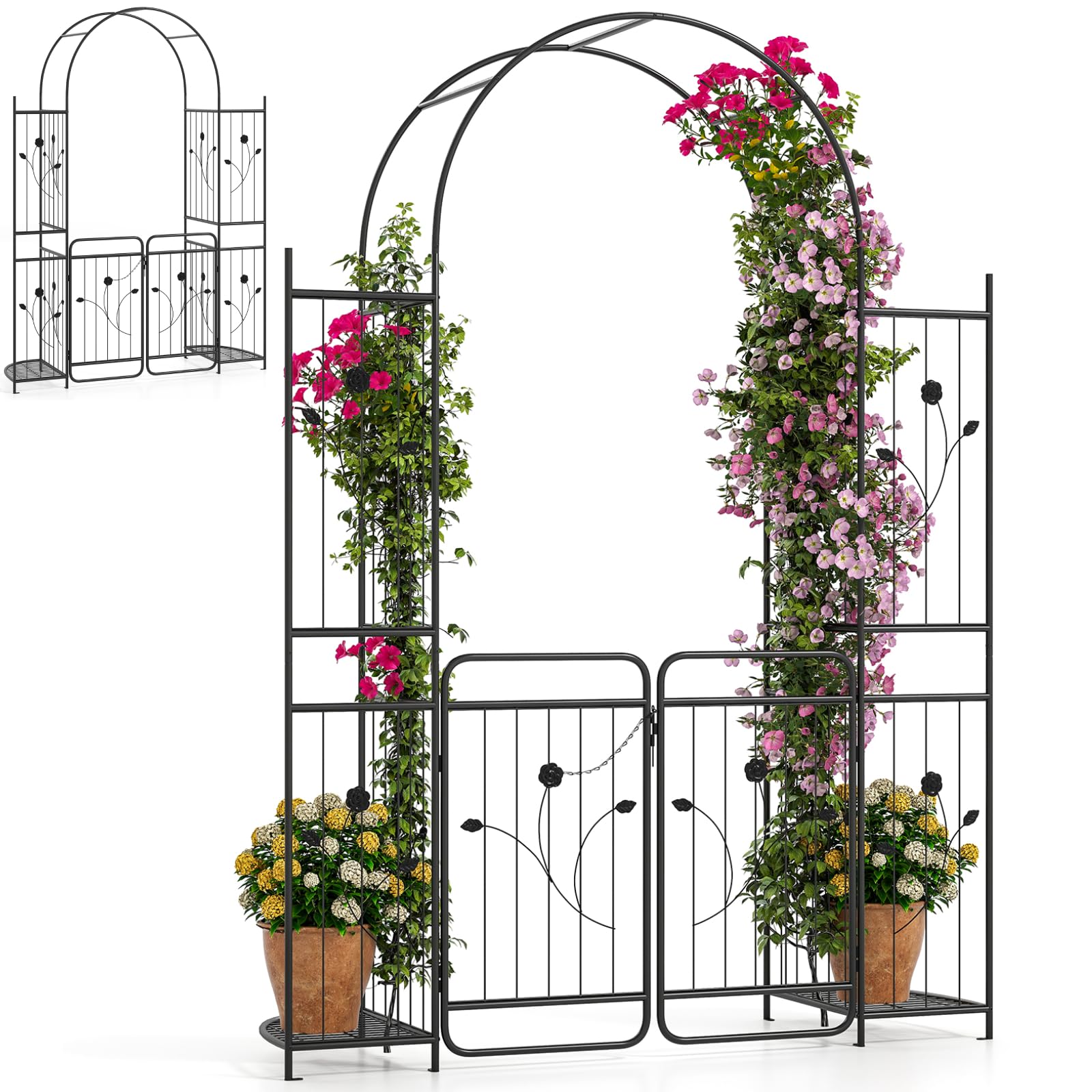 Garden Arch with Gate, Metal Pergola Arbor Trellis for Climbing Plant Rose Vines
