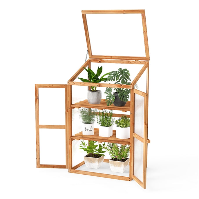 Giantexuk mini wooden greenhouse, garden cold frame with 2 doors and skylight