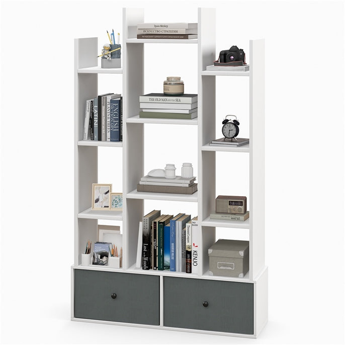 7/12-tier wooden bookshelf with folding drawer for study living room