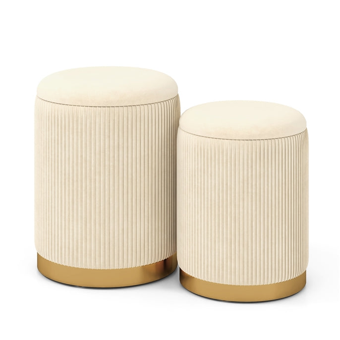 Velvet storage ottoman set of 2 with gold stainless steel hoop