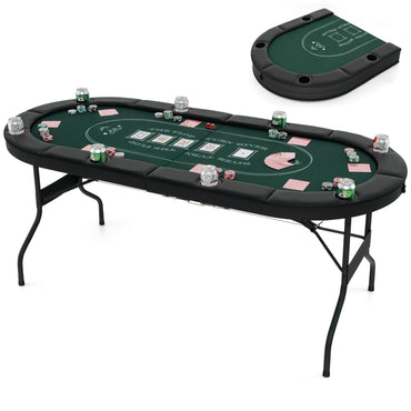 Foldable Poker Table for 8 Players Portable Oval Card Board with Cup Holders