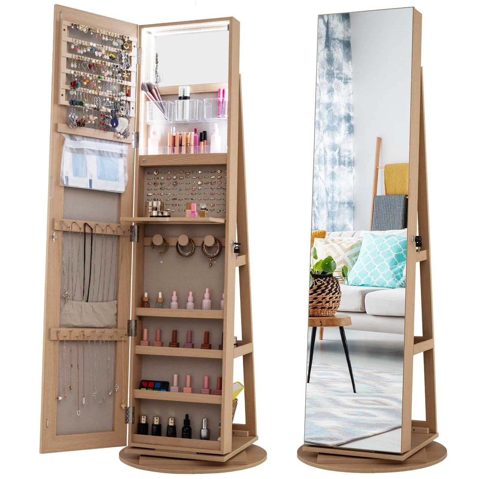360° swivel jewelry cabinet freestanding jewelry storage organizer with lighted full length mirror