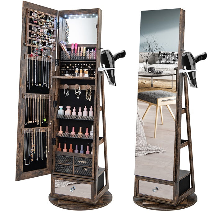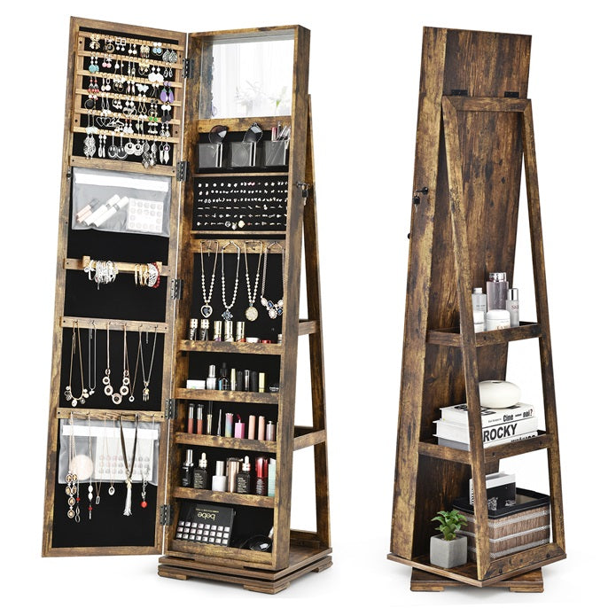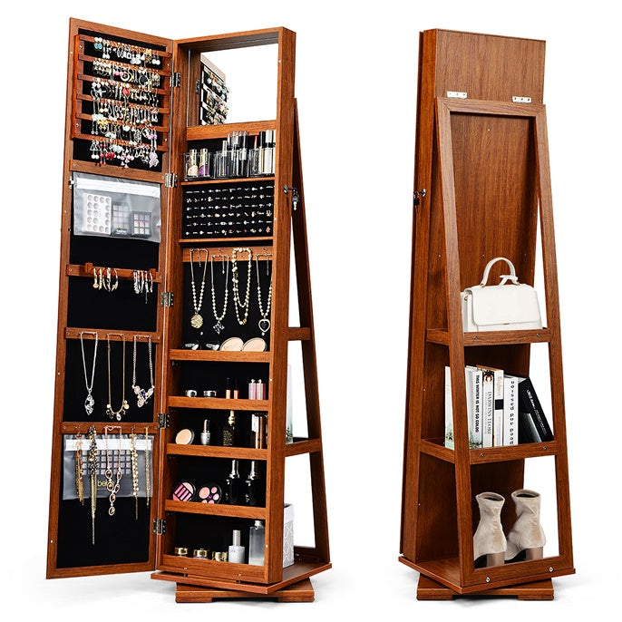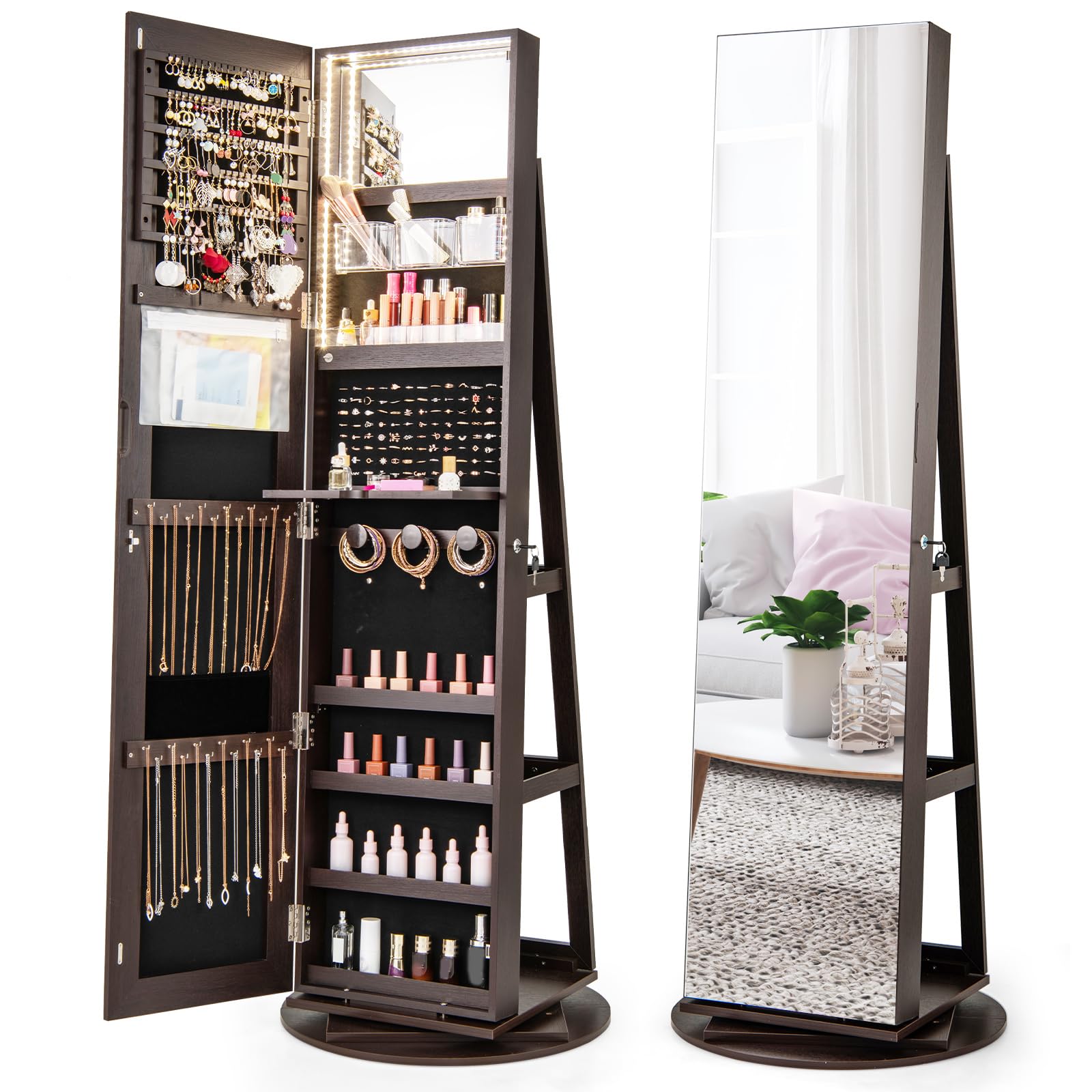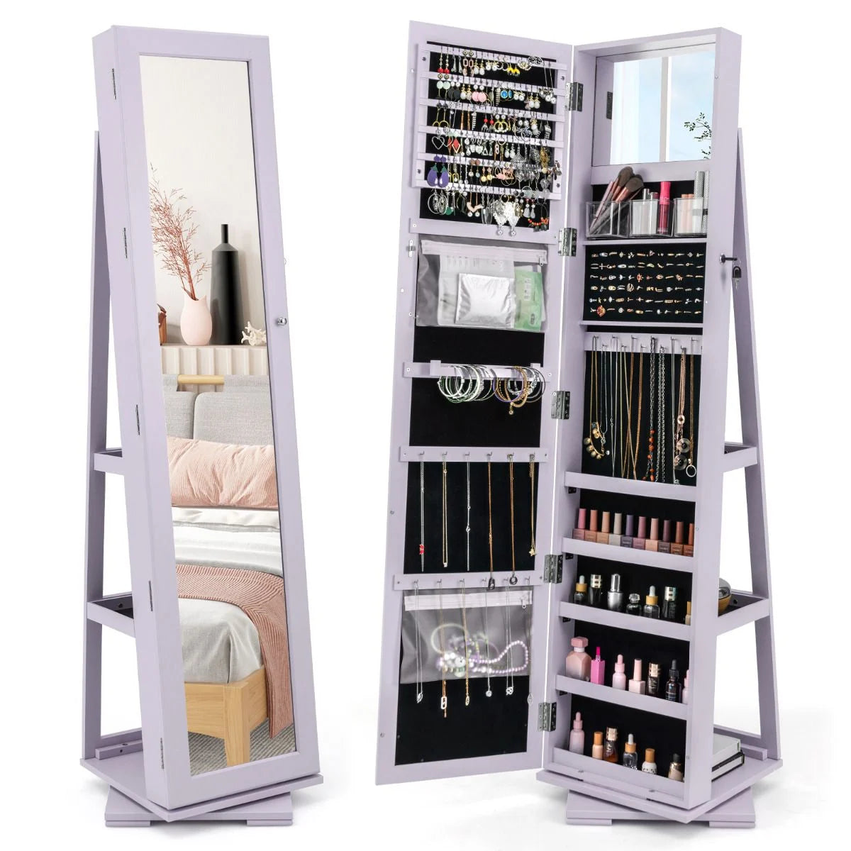 360° swivel lockable jewelry armoire cabinet with full-length mirror