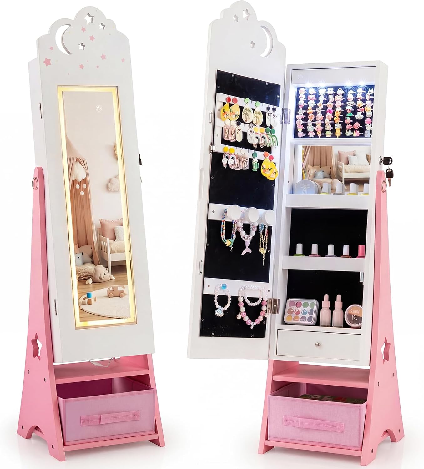 Kids jewelry cabinet with sensor lights and full-length mirror
