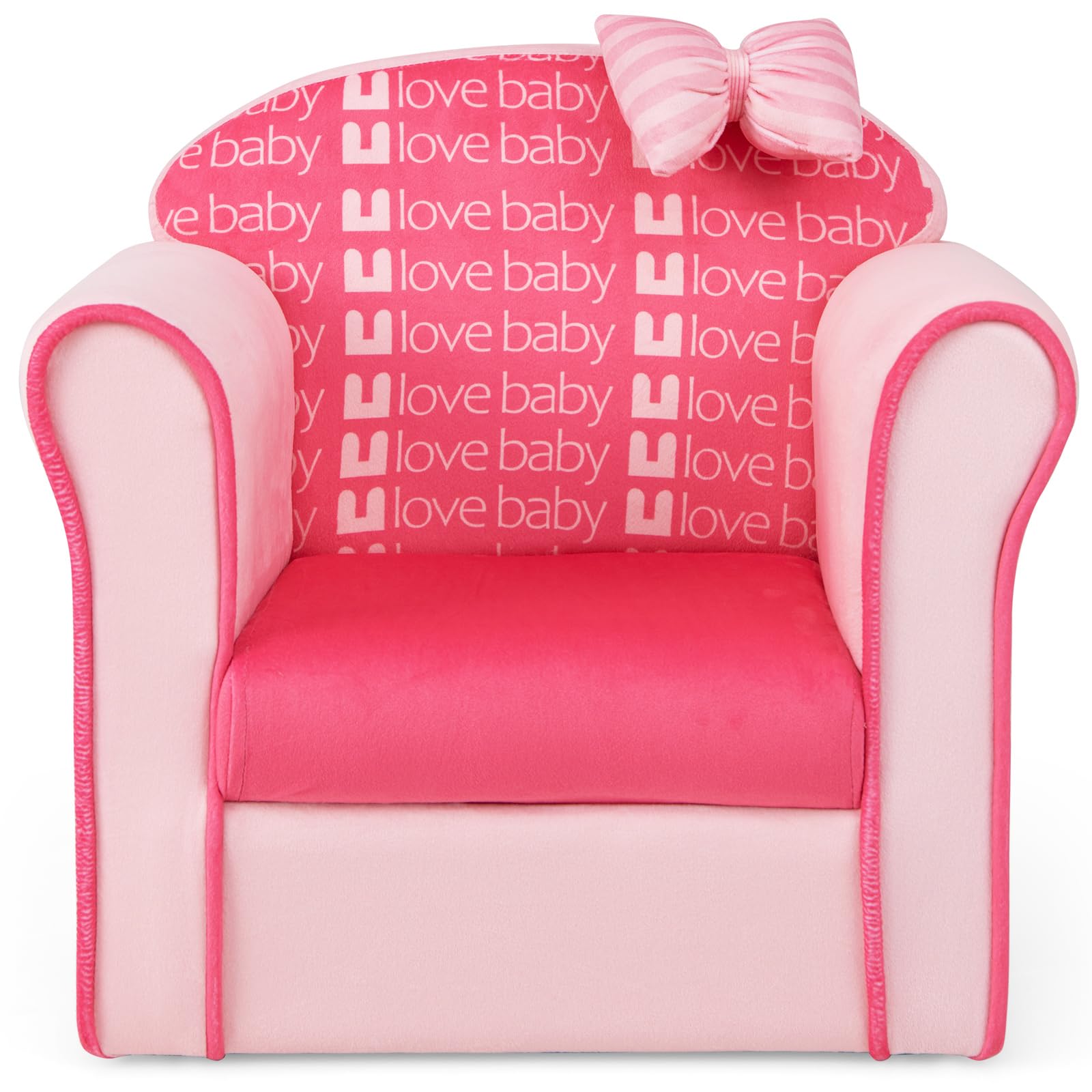 This toddler couch creates a cute and cozy seating area for your child. Decorative bow and beautiful patterns attract kid's attention. Ergonomic backrest, wide seat and...