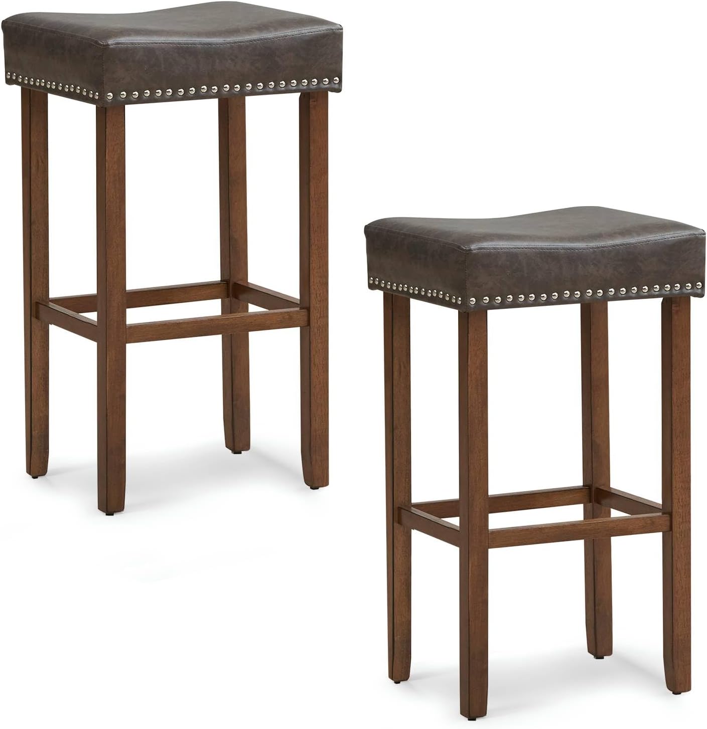 Giantexuk bar stools set of 2, pu leather kitchen saddle stools with rubber wood legs, footrests & non-slip foot pad