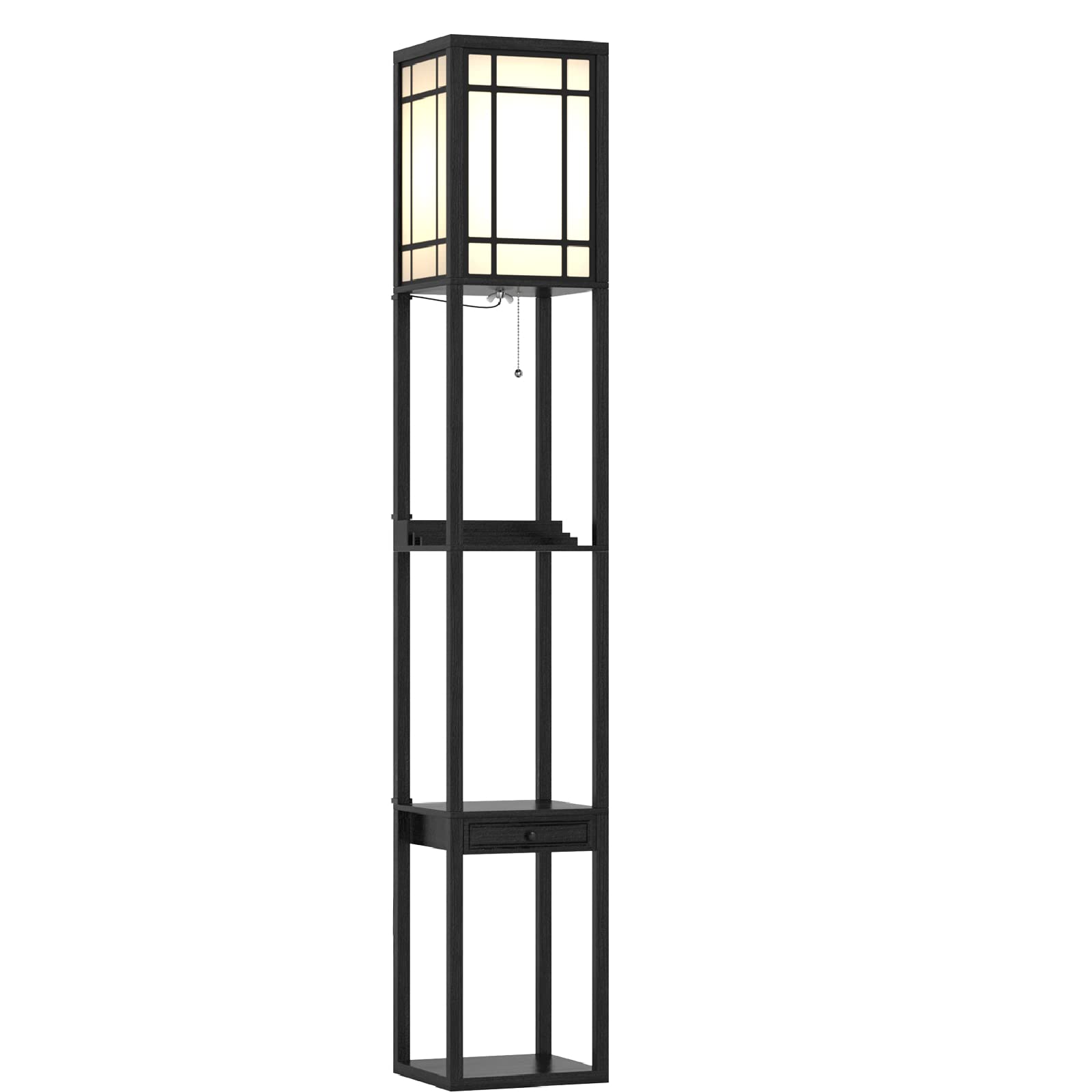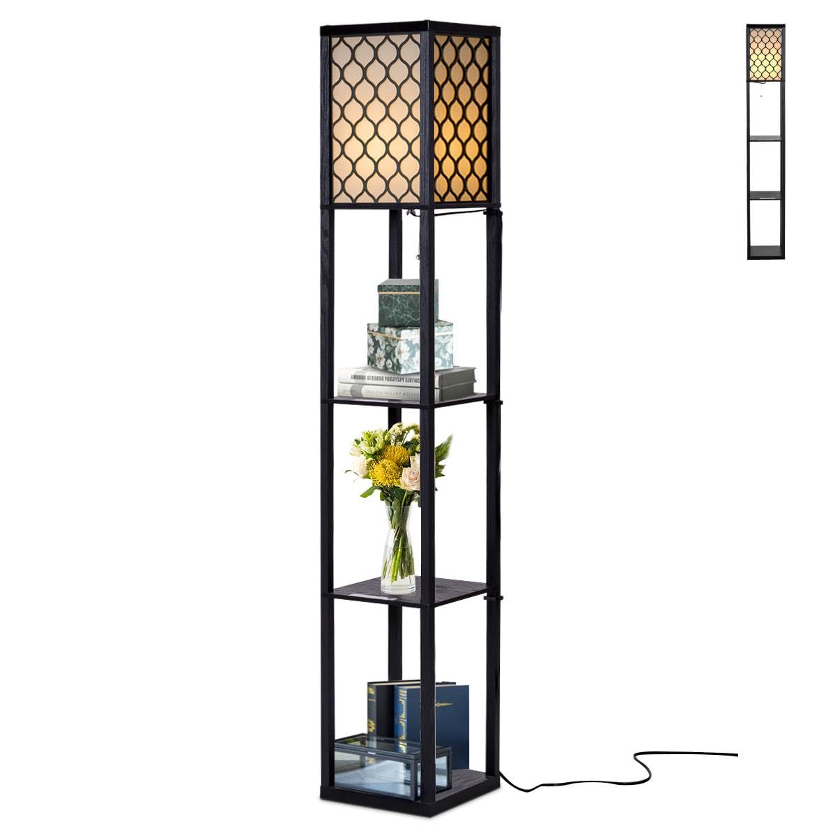 Giantexuk floor lamp with shelves, 3 layers tall standing light (with grid patterns)