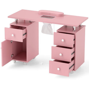 Portable Nail Table Station Manicure Tech Desk Nails Art Table 4 Rolling Wheels