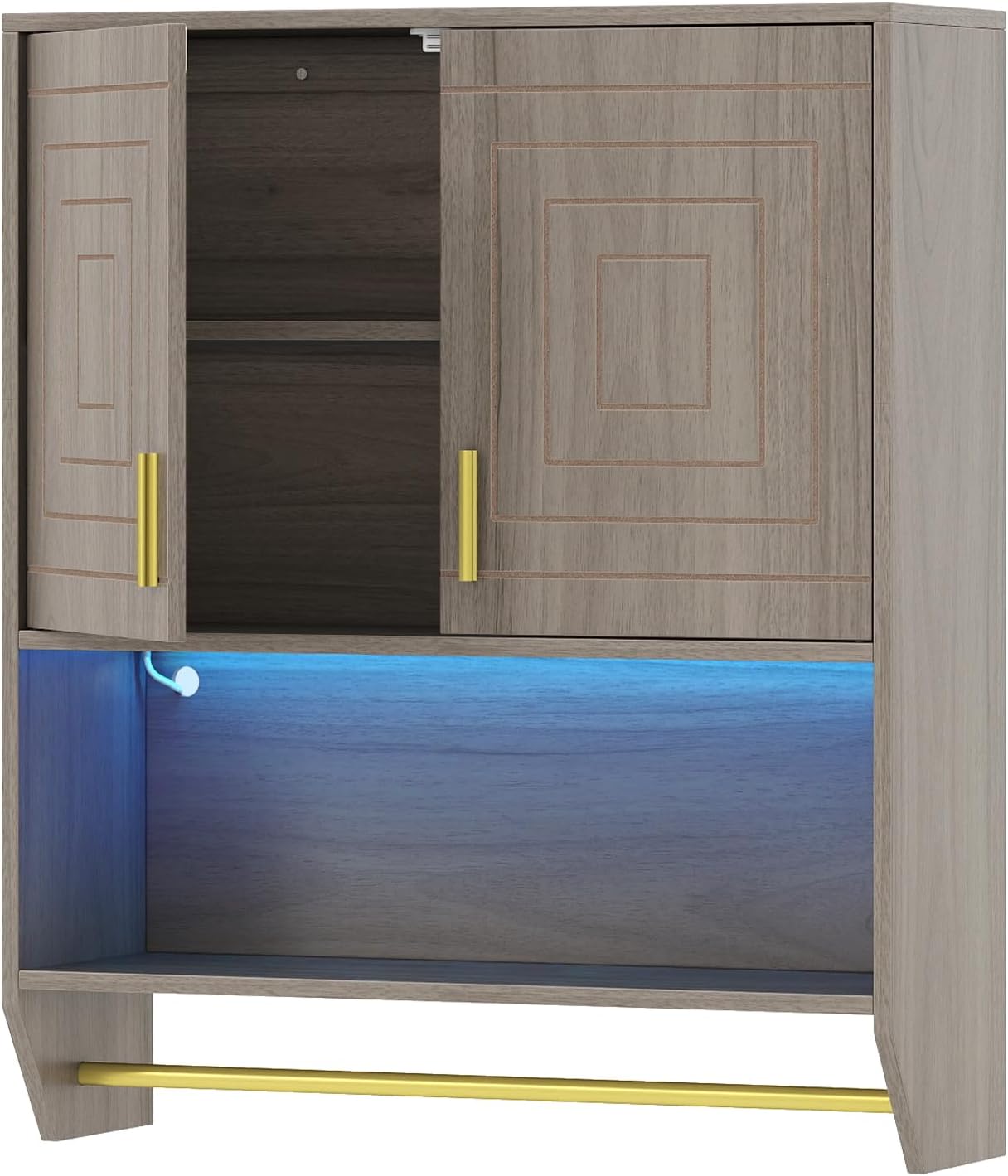 Bathroom wall cabinet with double door and open shelf and towel rack