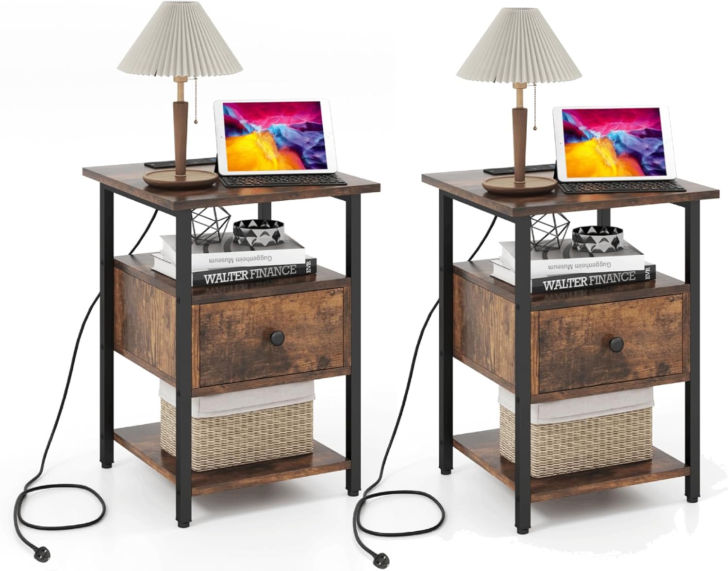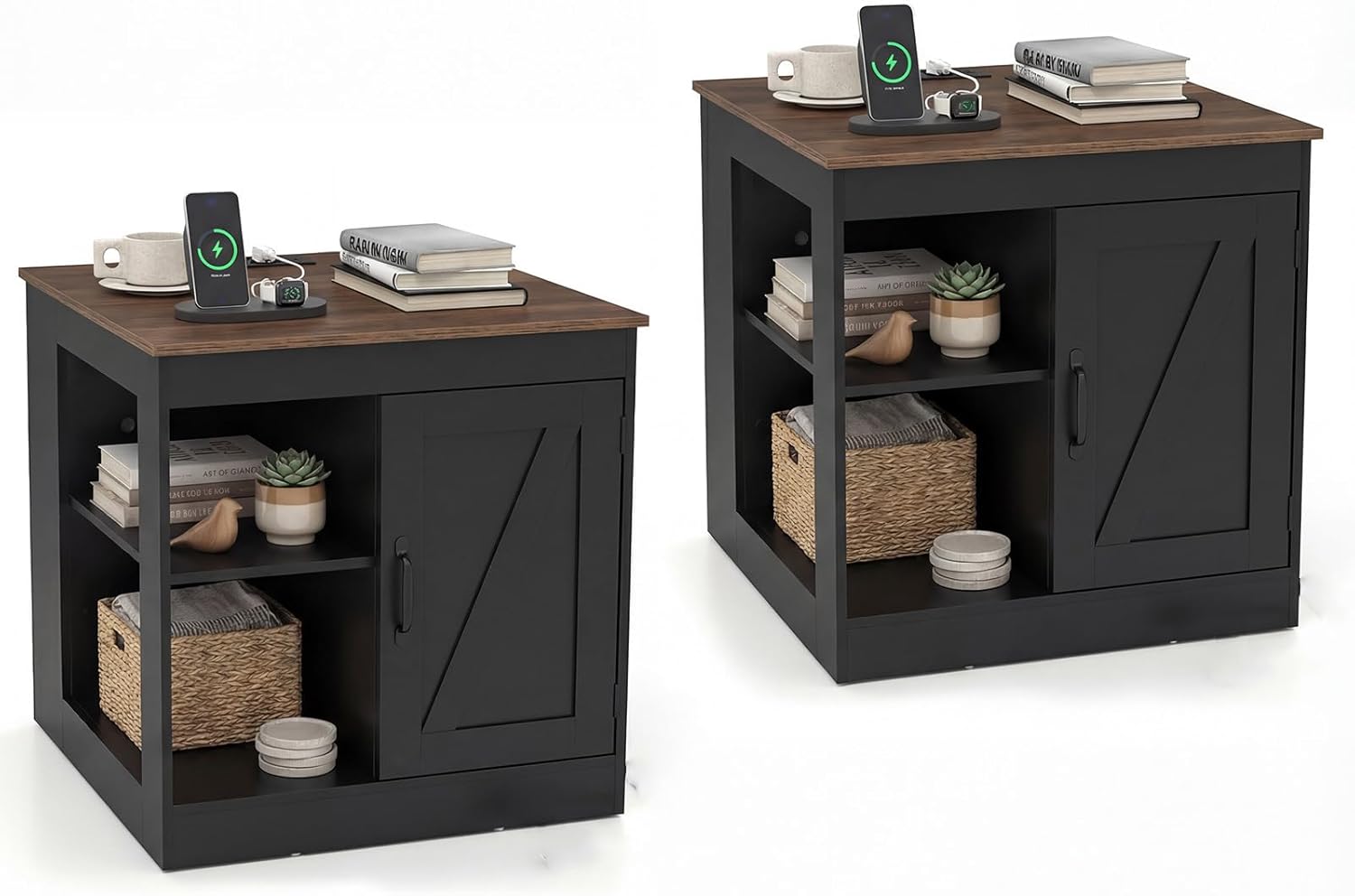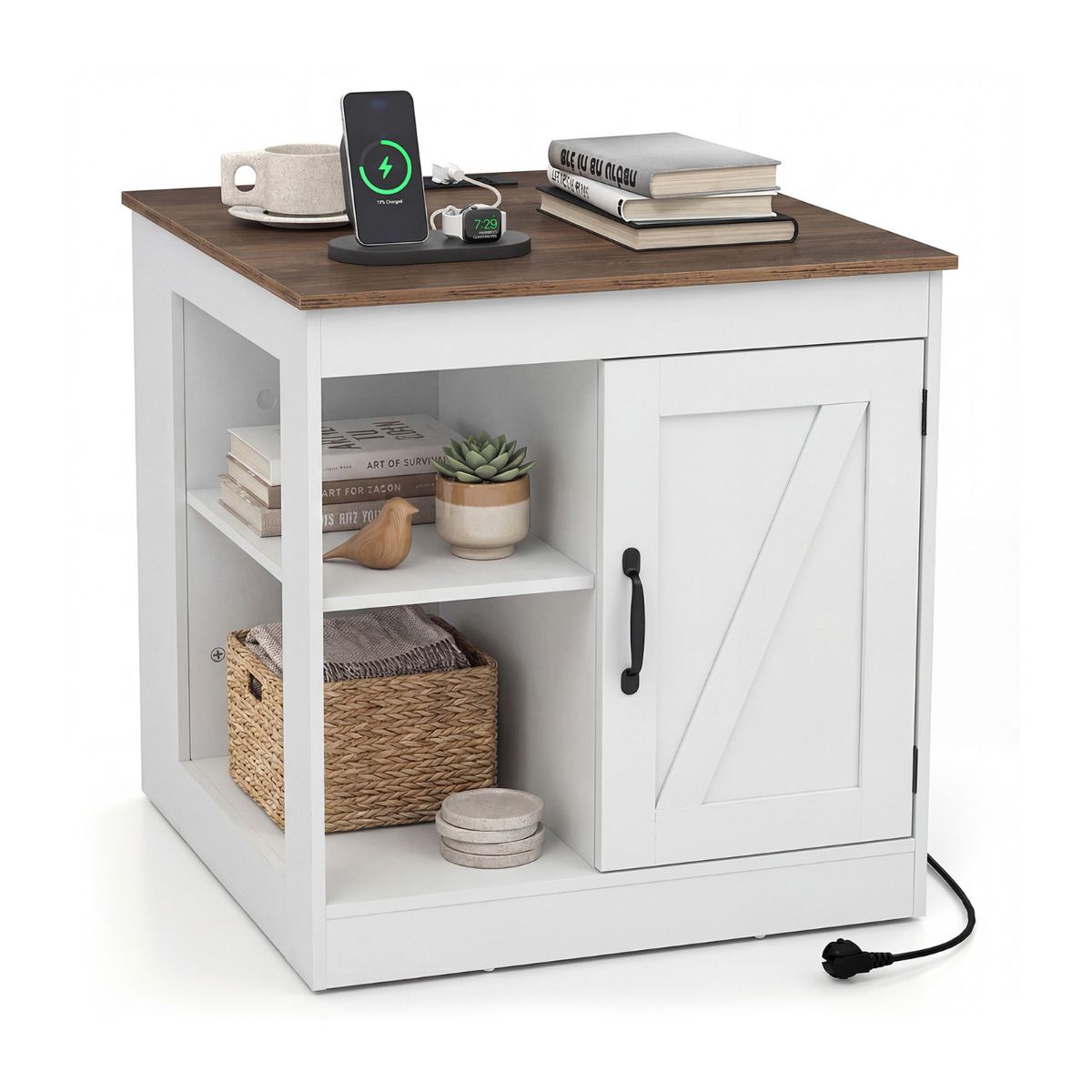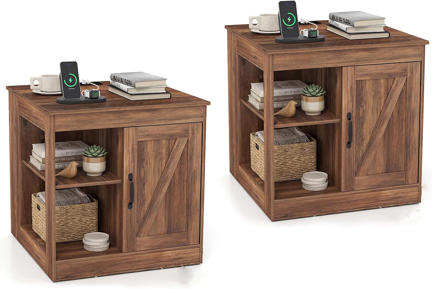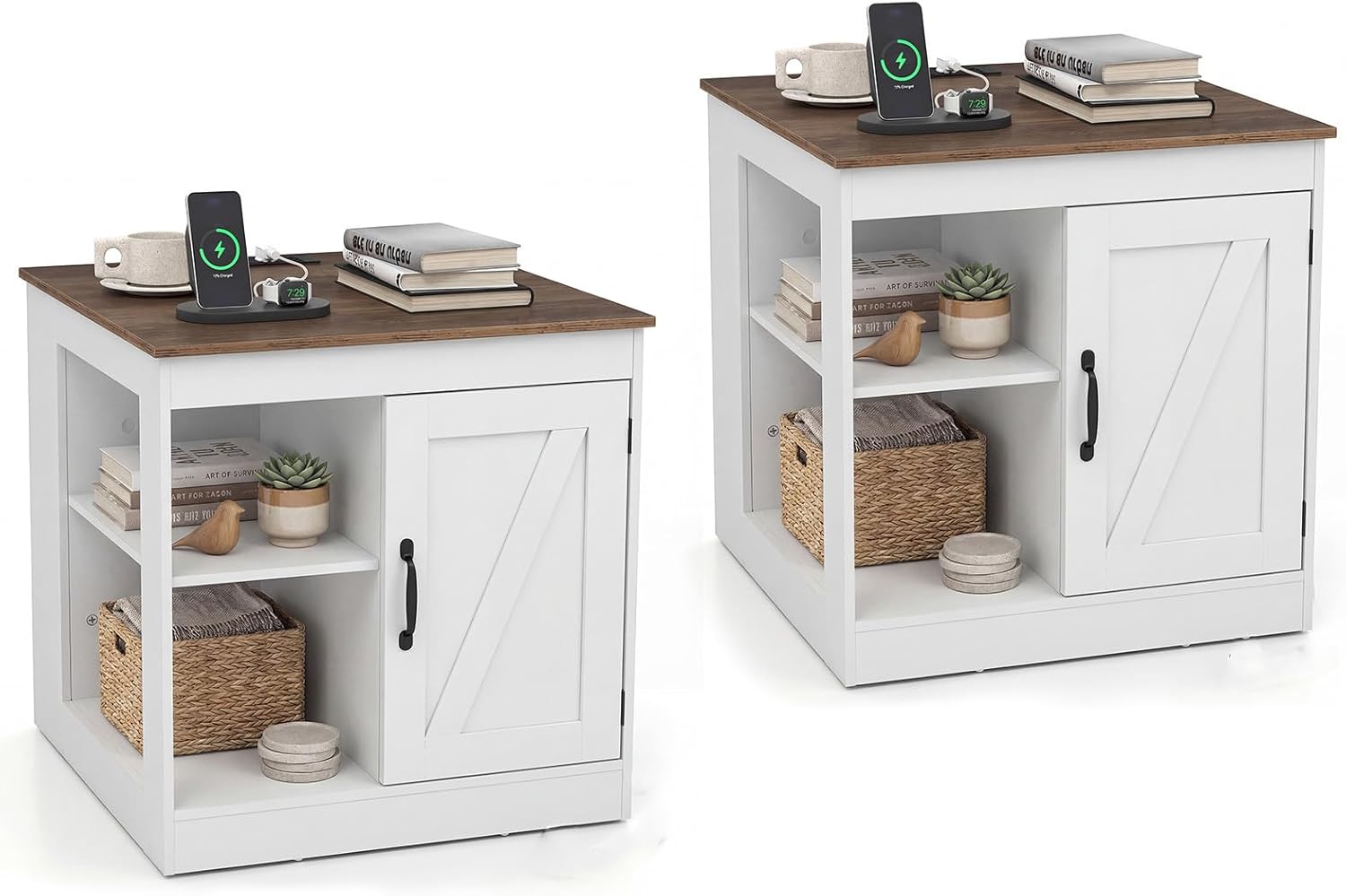 Farmhouse nightstand with charging station bedside table with adjustable shelf