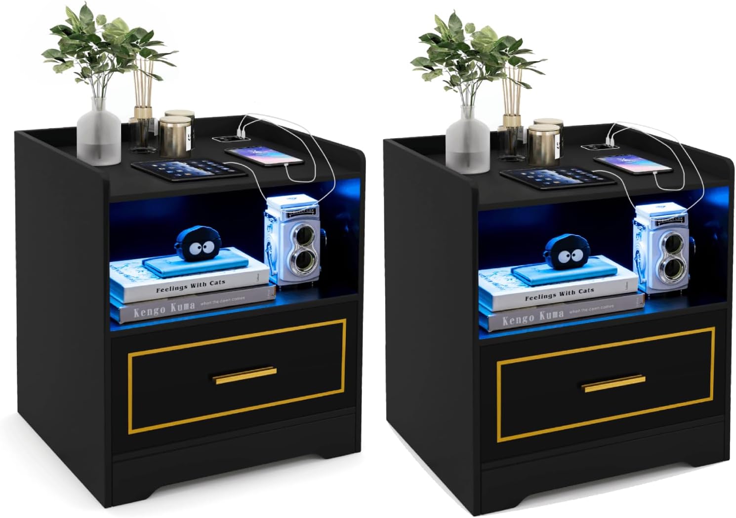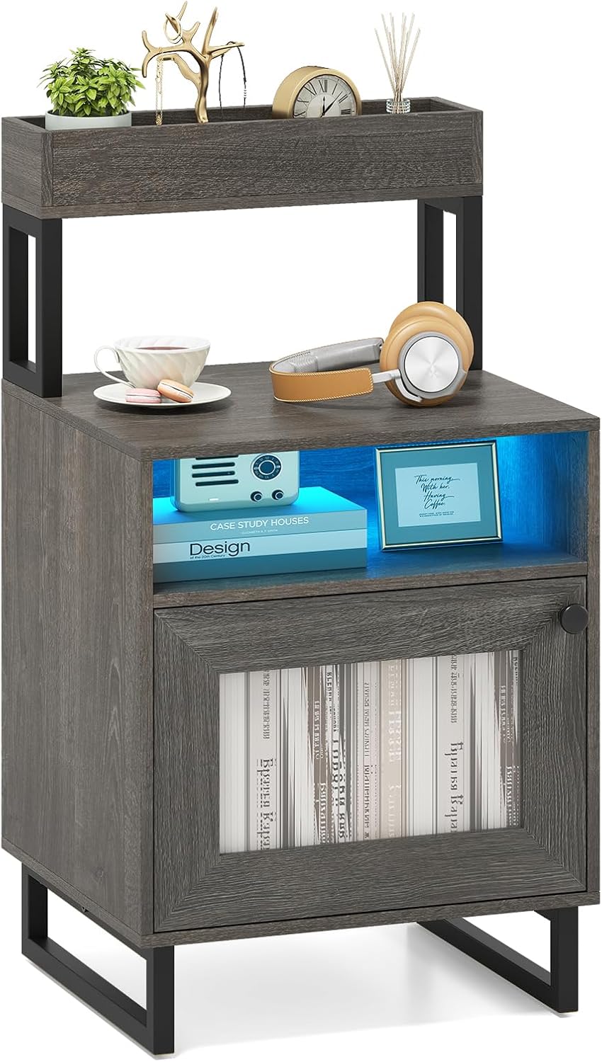 Bedside table with led lights, smart nightstand end sofa side table with top tray