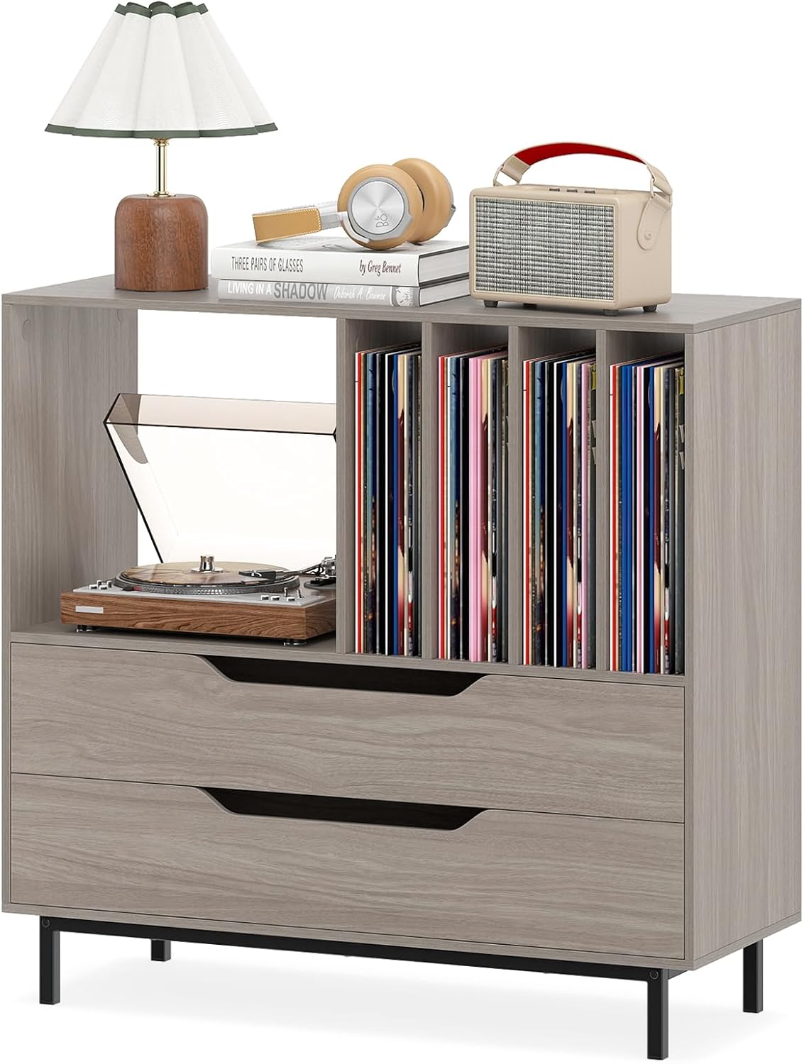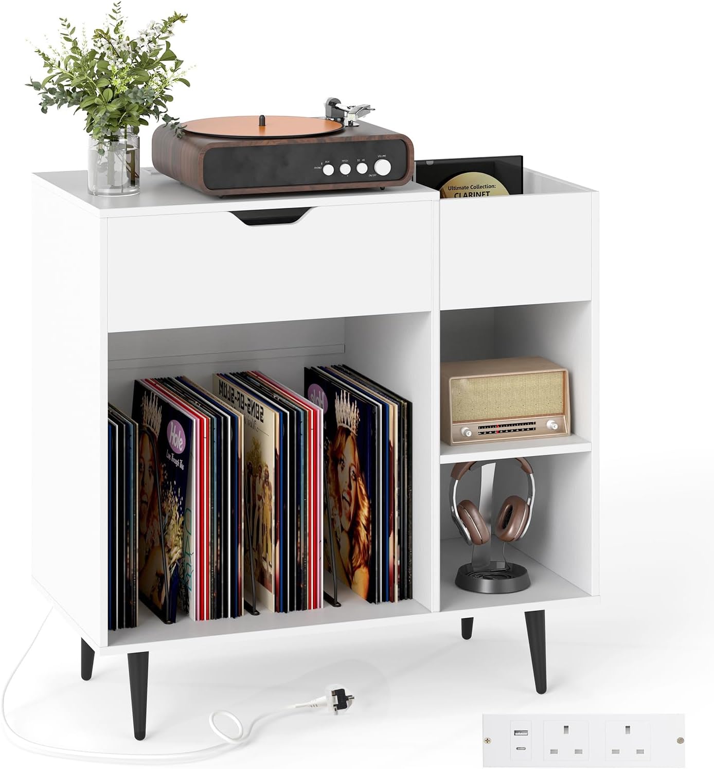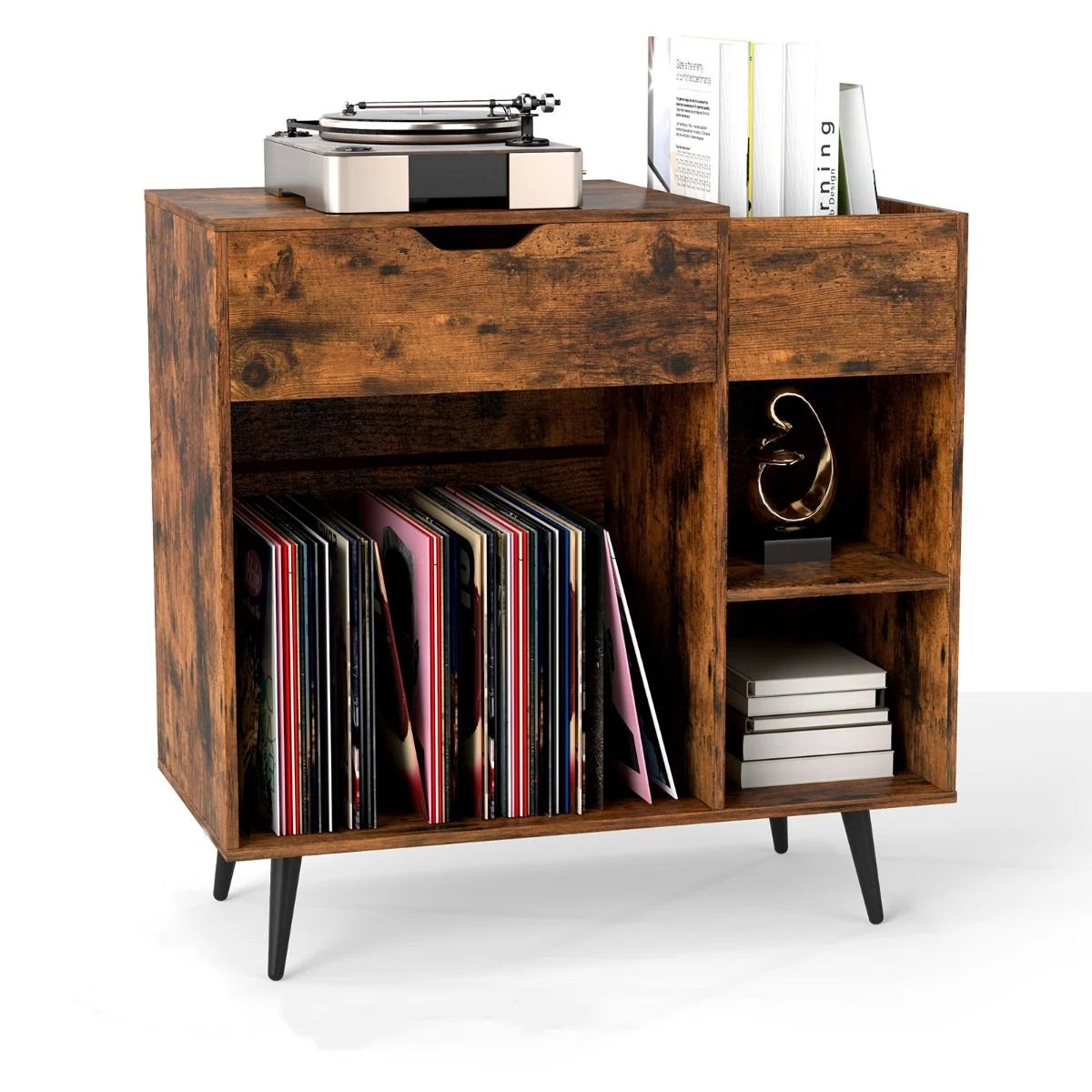 Product Details: Get organized in style with the versatile record player stand. Its spacious design includes a wide drawer, 3 storage cubes, and a large compartment...