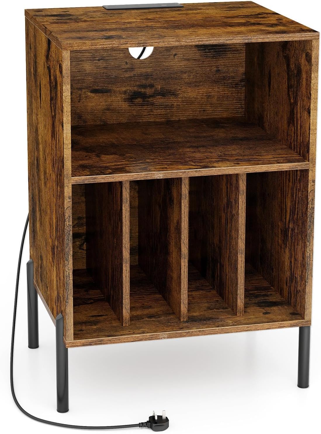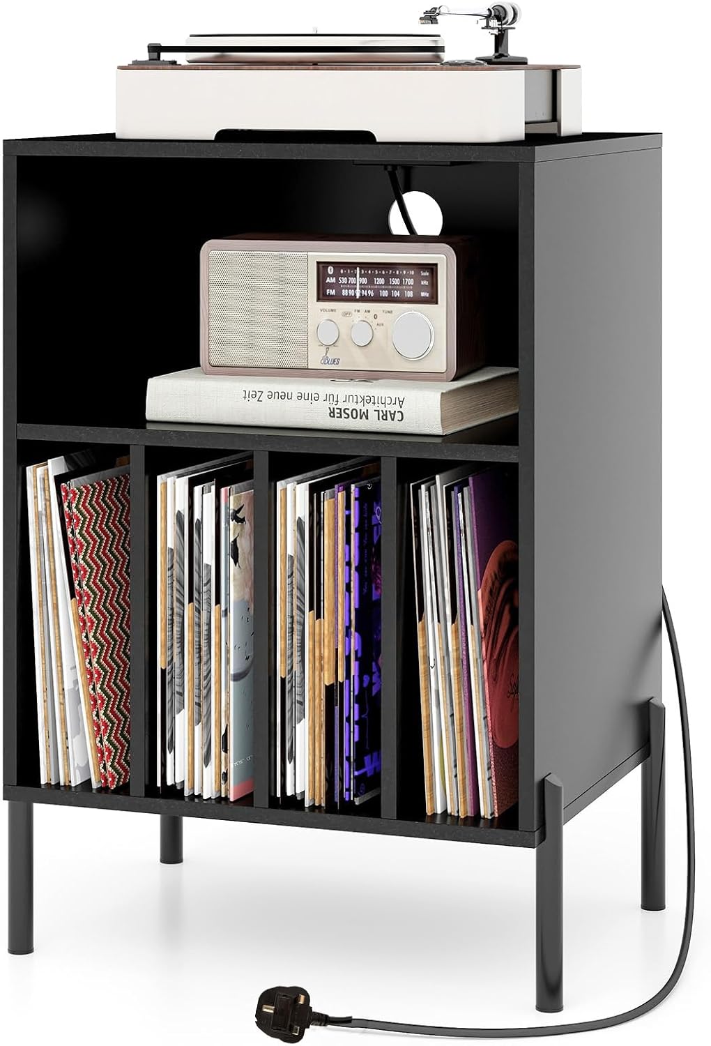 Record player stand, turntable stand with charging station and 5 shelves for 150 albums