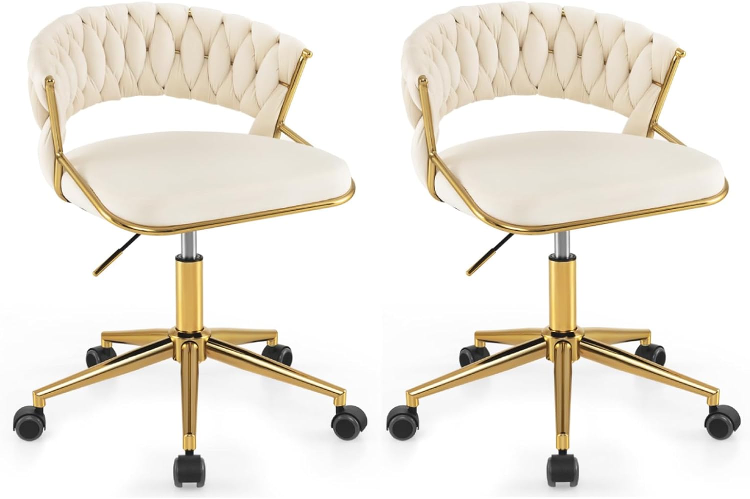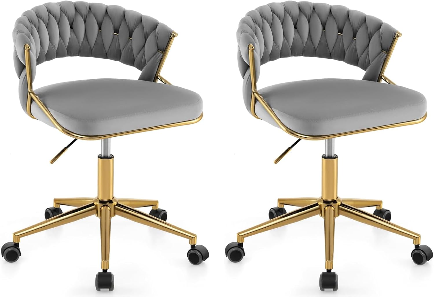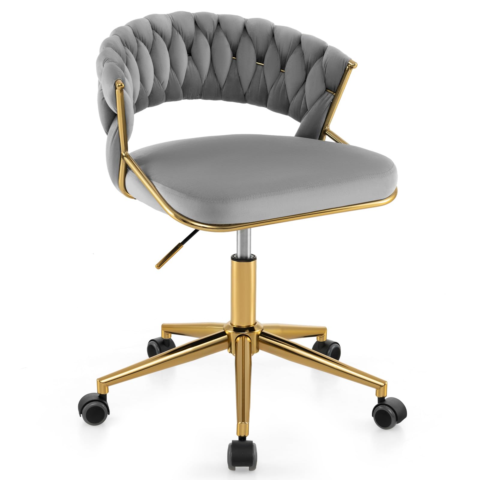 Modern desk chair, height adjustable swivel upholstered computer chair leisure vanity seat with wheels