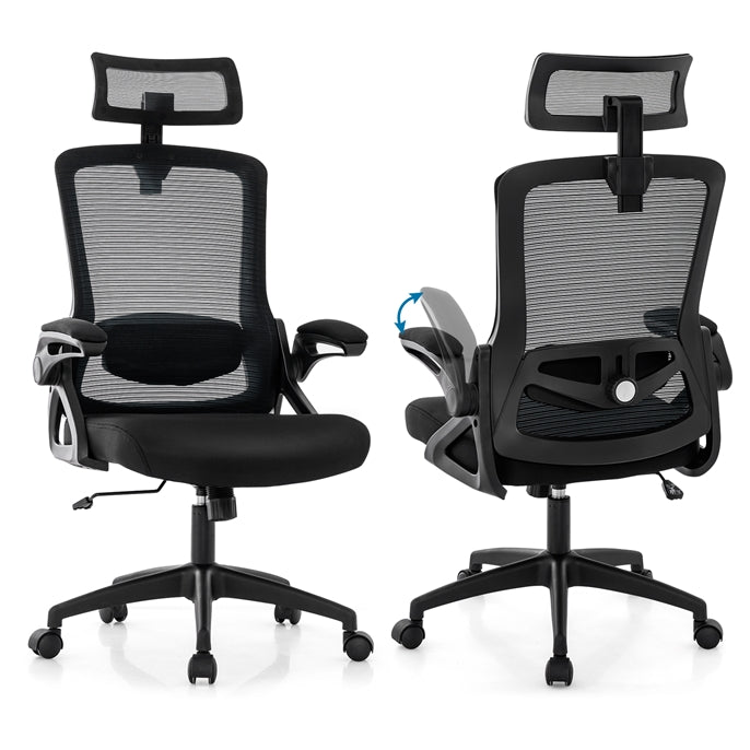 Mesh office chair, adjustable height swivel computer chair with flip-up armrests