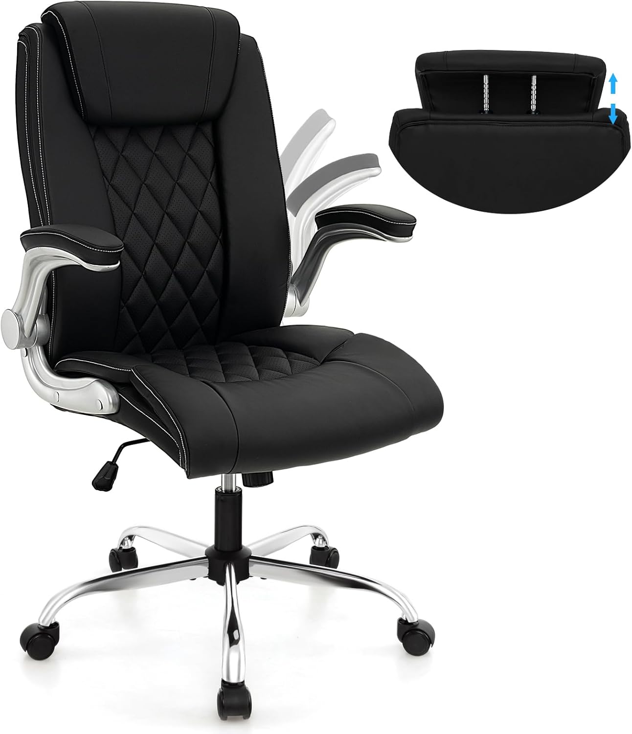 【Adjustable Headrest & Height】This executive office chair boasts a 6-position adjustable headrest. Likewise, the overall height can be adjusted easily. As a result, the computer desk...