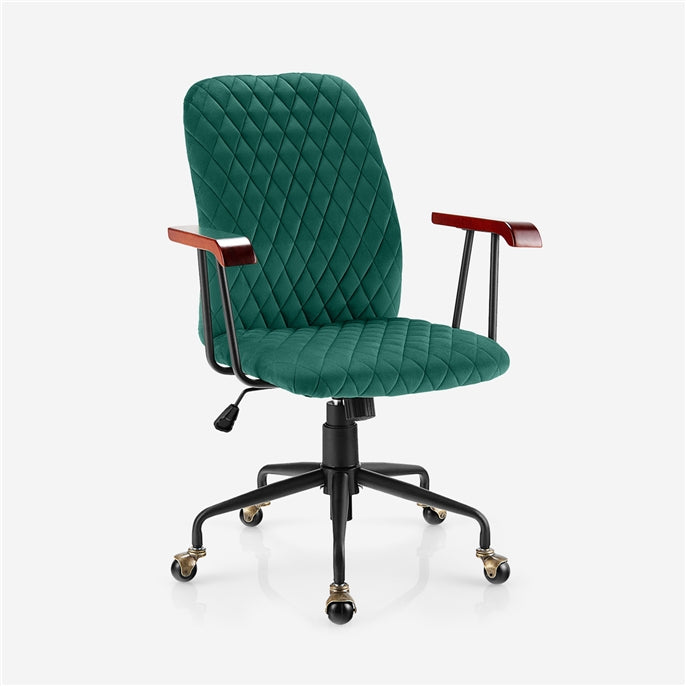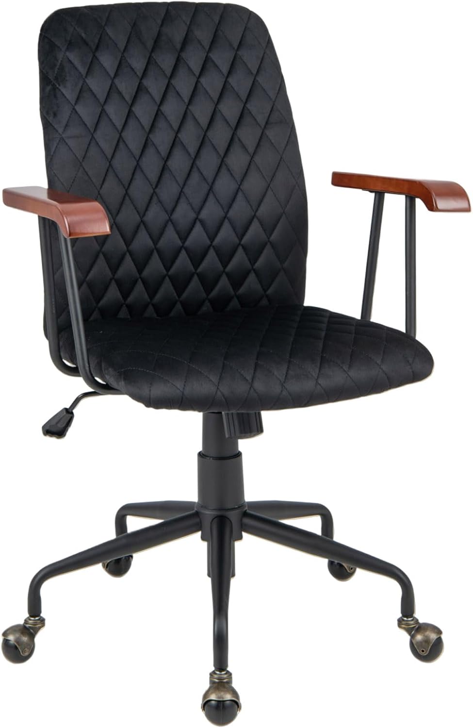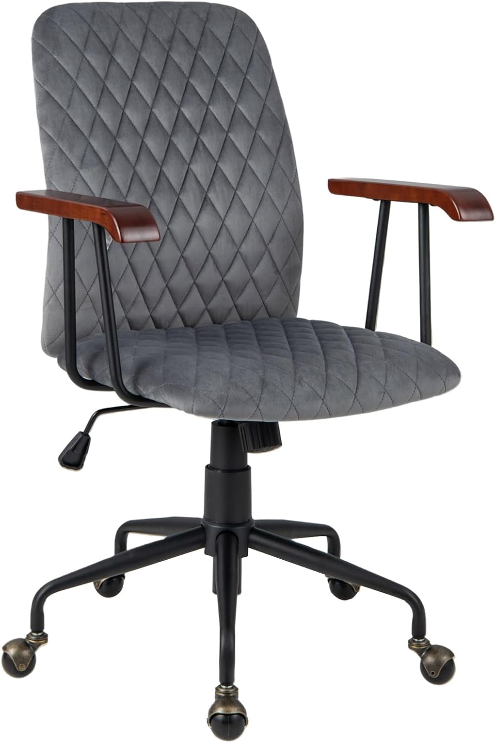 Velvet office chair, ergonomic swivel computer desk chair with rubber wood armrests