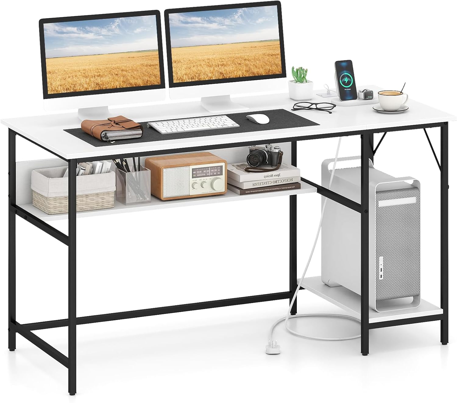 There are 4 power sockets and 2 USB ports to provide fast charging options for various electronics. Featuring wide desktop and under-desk shelf, the computer workstation increases generous space to...