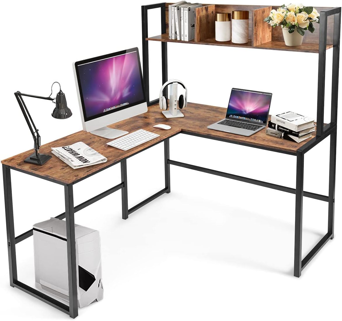 ❤SPACIOUS L-SHAPED WORK AREA: The computer desk with spacious L-shaped tabletop provides ample storage space for computers, books, keyboards, cup, potted plants, lamp, etc. Besides, L-shaped...