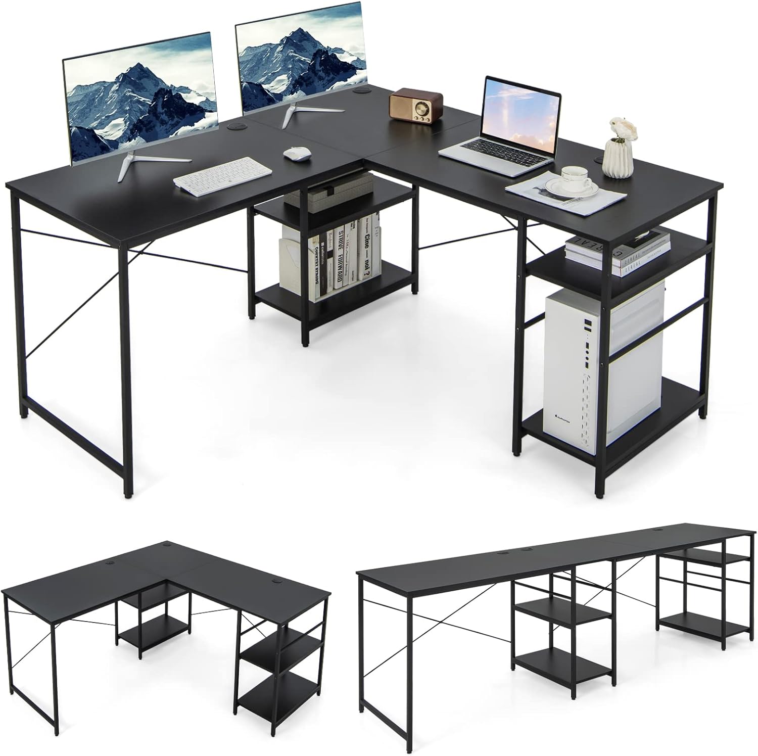 【2-in-1 Multiform Computer Desk】This L-shaped desk has different ways to set up, which helps you to customize your workspace to your needs. It can not only...
